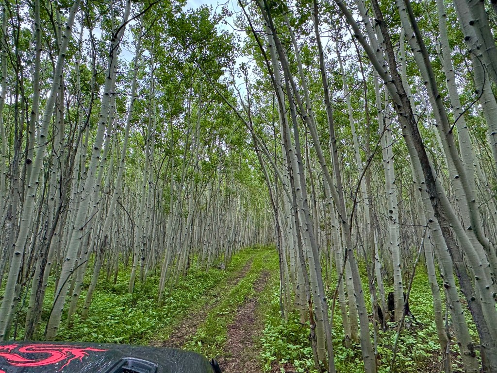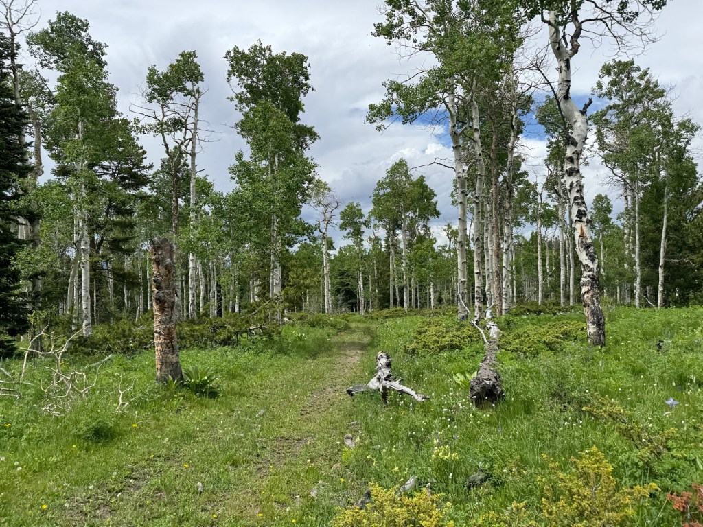 Not far from the lakes is Bull Mountain OHV trail. We found a picturesque spot for lunch among thick aspen groves and forests. A scarcely used trail off Bull Mountain road led us through beautiful wildflower meadows. On our way back, Bill spotted a woodchuck scurrying across the road.