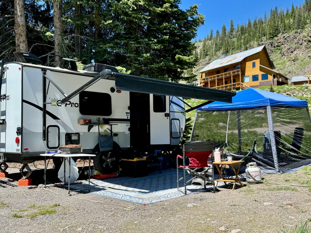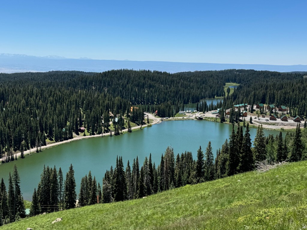 We secured an RV site at the Grand Mesa Lodge, nestled directly on Island Lake at an elevation of 10,500 feet. Island Lake, the largest on Grand Mesa, is renowned for its clear waters and scenic beauty. Surrounded by lush forests and towering peaks, it’s perfect for fishing, kayaking, and picnicking.