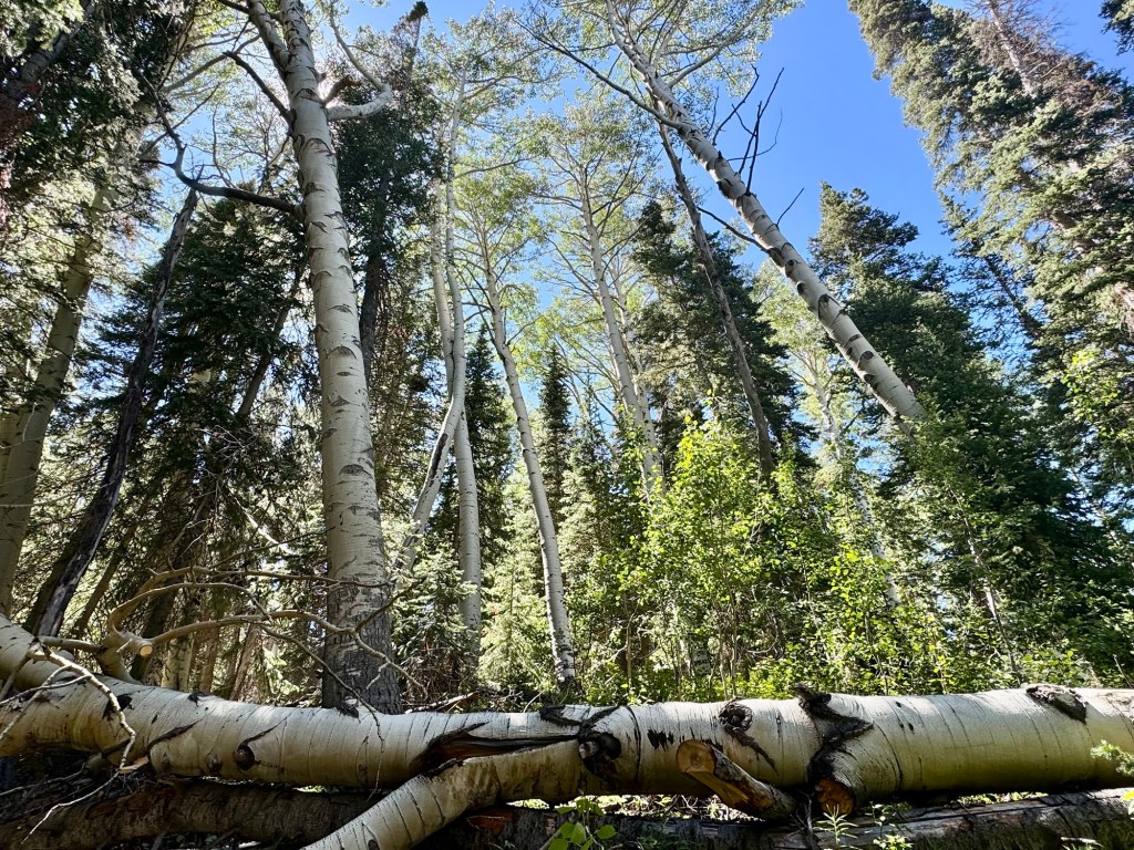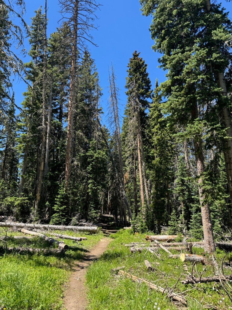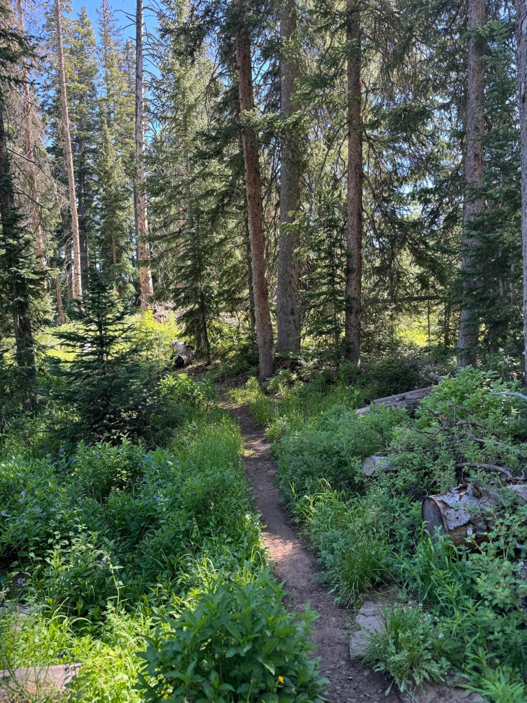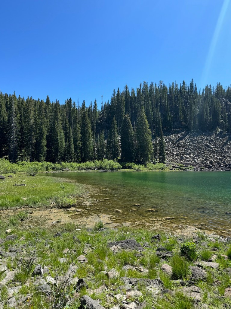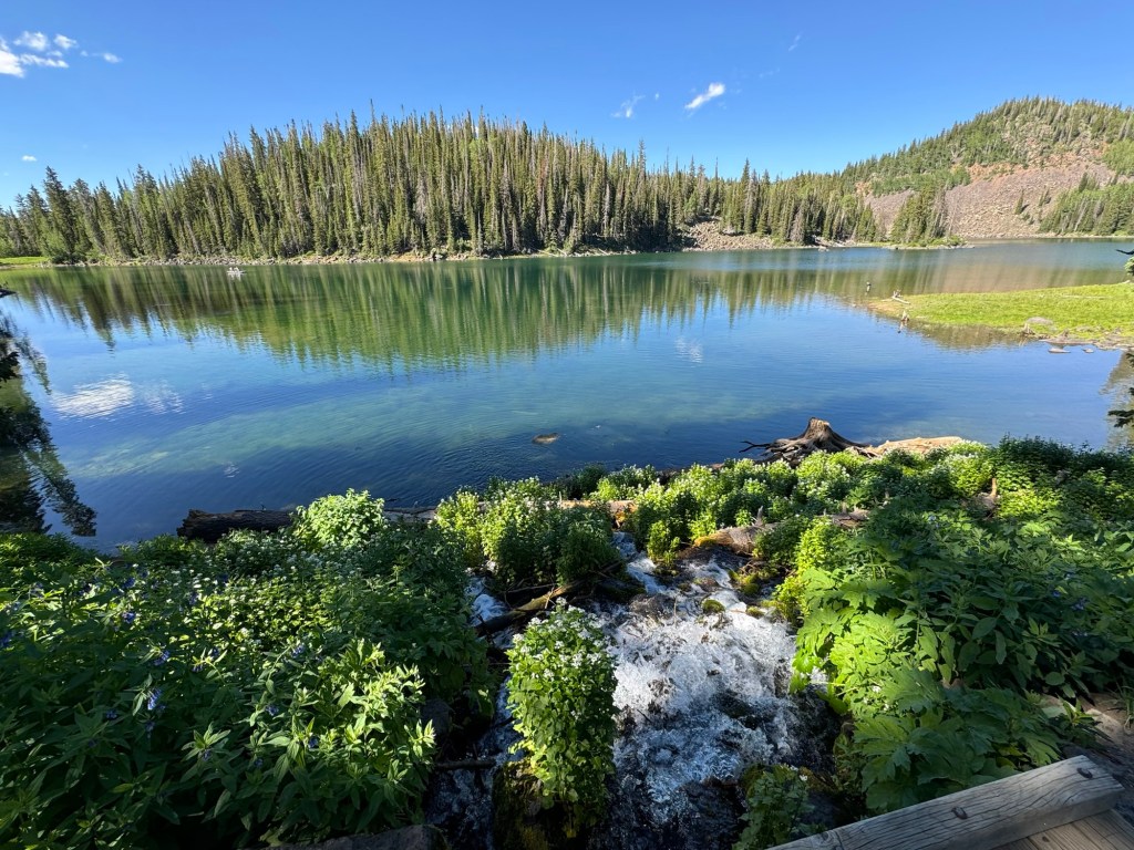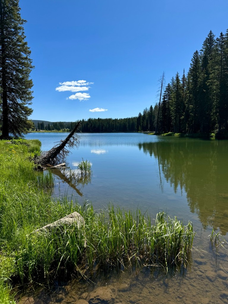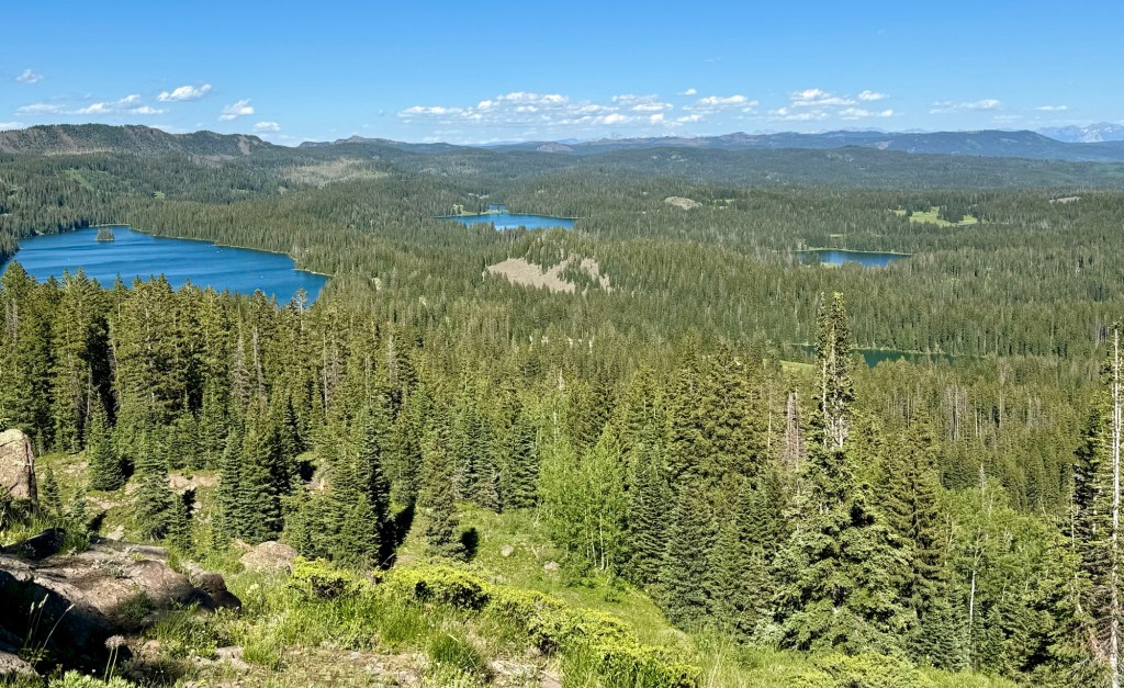 As we climbed, the elevation provided a unique perspective on Grand Mesa’s geological features. We passed Forrest Lake and other ponds, encountering open hillsides with views of all the activity around the lakes below. Wildlife sightings and diverse flora added to the trail’s allure. We made our way to the West Trailhead and finally back to camp.