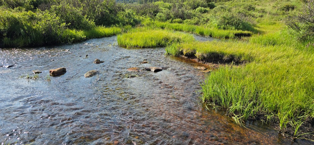 About 5 miles in the trail begins its steepest section of ascent before coming out at the Meadow just over 7 miles in where there is great habitat for the opportunity to see Moose, Elk, Deer, and Bear. We did manage to see deer both hiking in and out the next day.