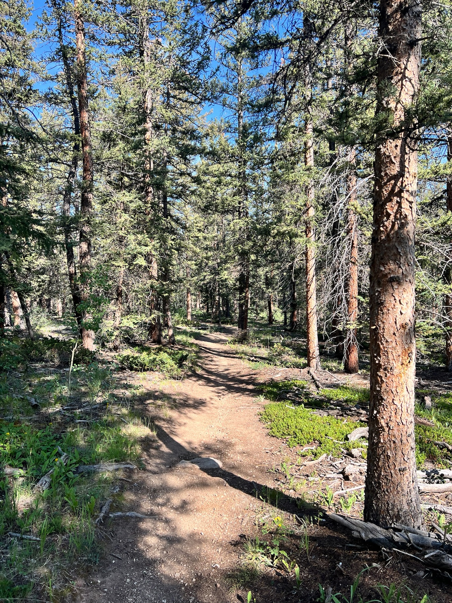 Our journey began at the Long Gulch trailhead. The drive there was a visual treat, taking us through the scenic Lost Creek Wilderness. As we set off, the trail meandered gently westward through a mix of pine and fir forests. The landscape gradually opened up into grassy clearings adorned with stands of aspen and Bristlecone pine, offering glimpses of the expansive wilderness.
