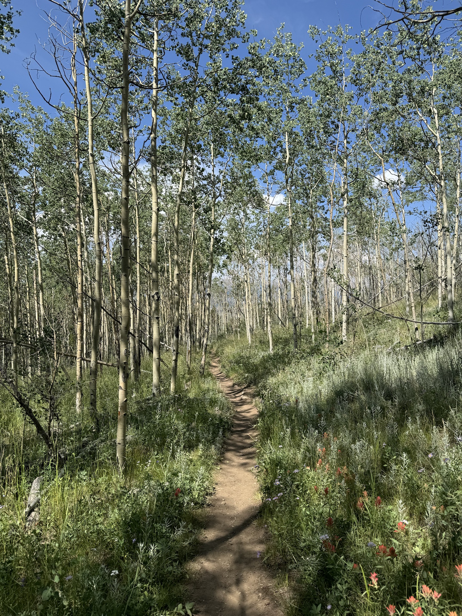 As we followed the trail along Johnson Gulch, we were treated to breathtaking views of South Park and the surrounding area. The closer we got to Kenosha Pass, the more we were enveloped by a forest of aspen trees. The vibrant greenery was a perfect setting for a relaxing pause. At the Kenosha East Campground, we stopped to explore the Kenosha Pass Railroad Station Documentary, adding a historical touch to our hike.