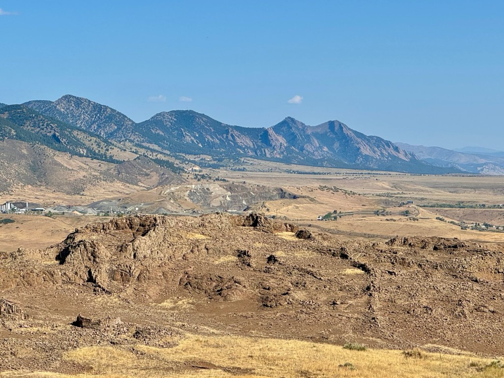 We continued our trek around the northern end of the North Table Loop, a well-maintained trail that spans about four miles round trip. Along the way, Greg and I discussed the fascinating geology of North Table Mountain. The mesa is a volcanic formation, dating back 64 to 62 million years ago, with a thick basalt cap formed by ancient lava flows. Its flat top and steep sides are shaped by layers of volcanic tuff, ash, and sedimentary rock beneath, with visible columnar jointing in the basalt. Erosion and tectonic uplift over time have carved its cliffs and boulder fields, making the landscape visually striking and full of history.