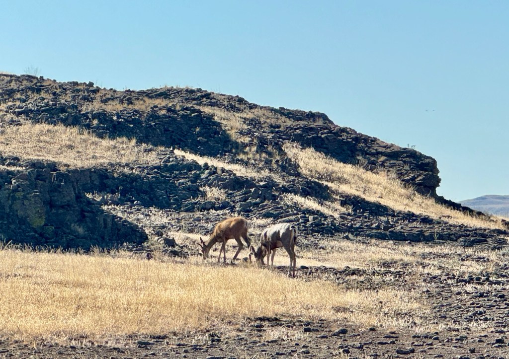 Once we completed the steep ascent, Greg and I headed toward Lichen Peak, a small, distinct summit on the northern end of North Table Mountain. The peak is named for the lichen-covered rocks that give it a unique appearance. As we hiked, we even spotted a couple of deer grazing, a quiet reminder of the beauty of Colorado’s wildlife.