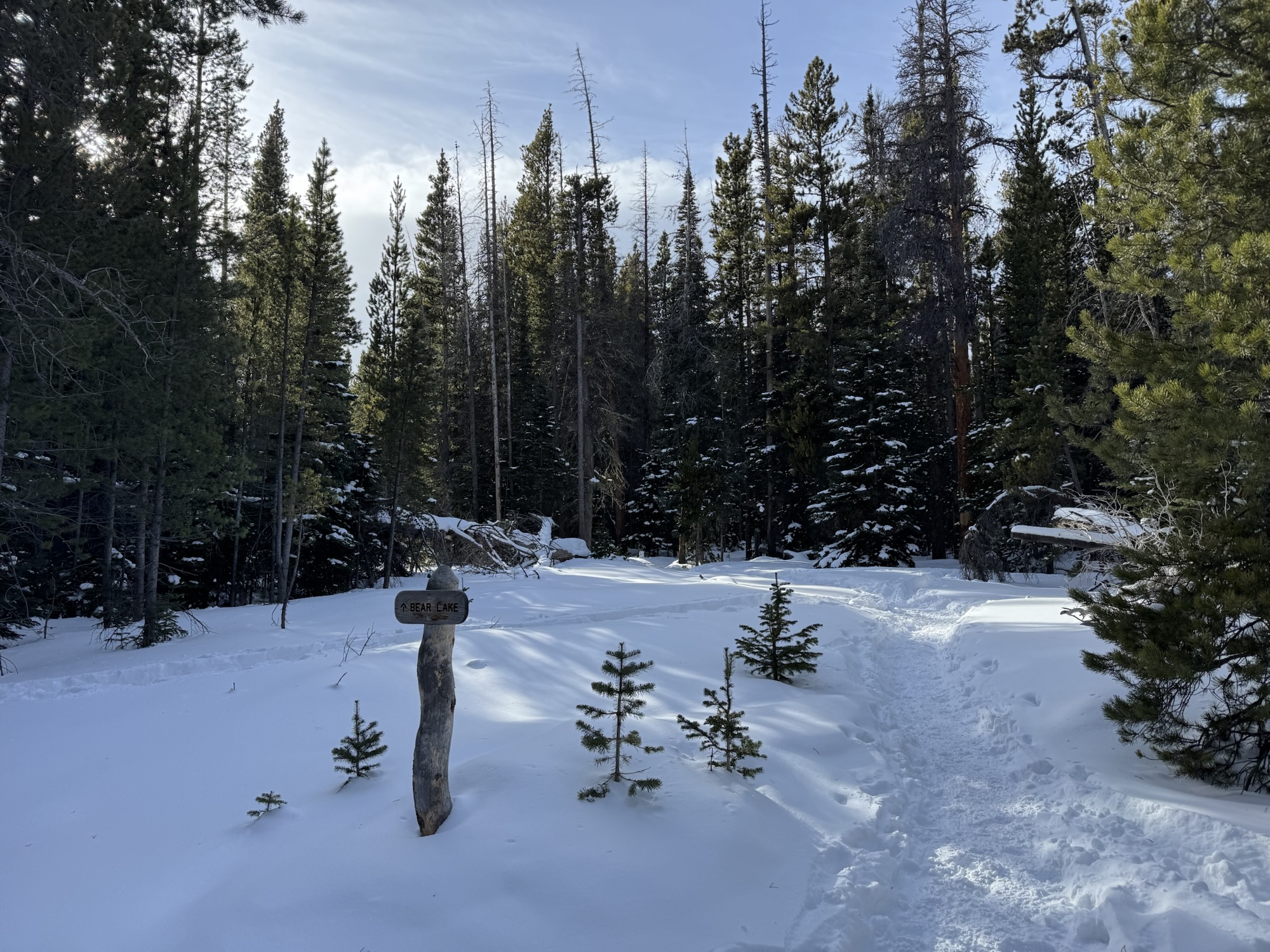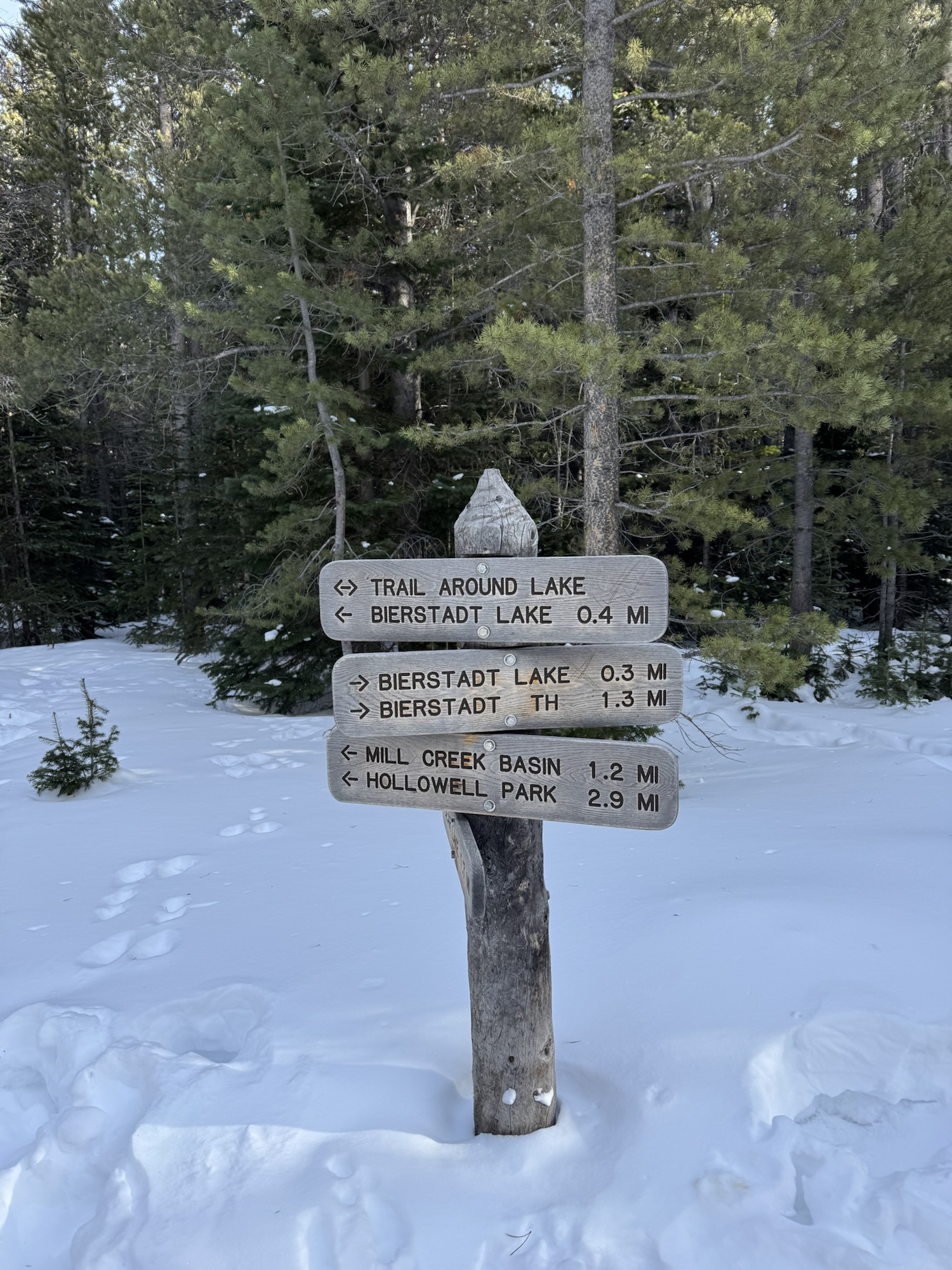 We made our way from Bear Lake to Bierstadt Lake, two stunning frozen lakes this time of year. Though the clouds kept the mountain views and the Continental Divide hidden from sight, the stillness of the landscape more than made up for it. The serenity of the snow-covered scenery was enough to fill our souls with awe.