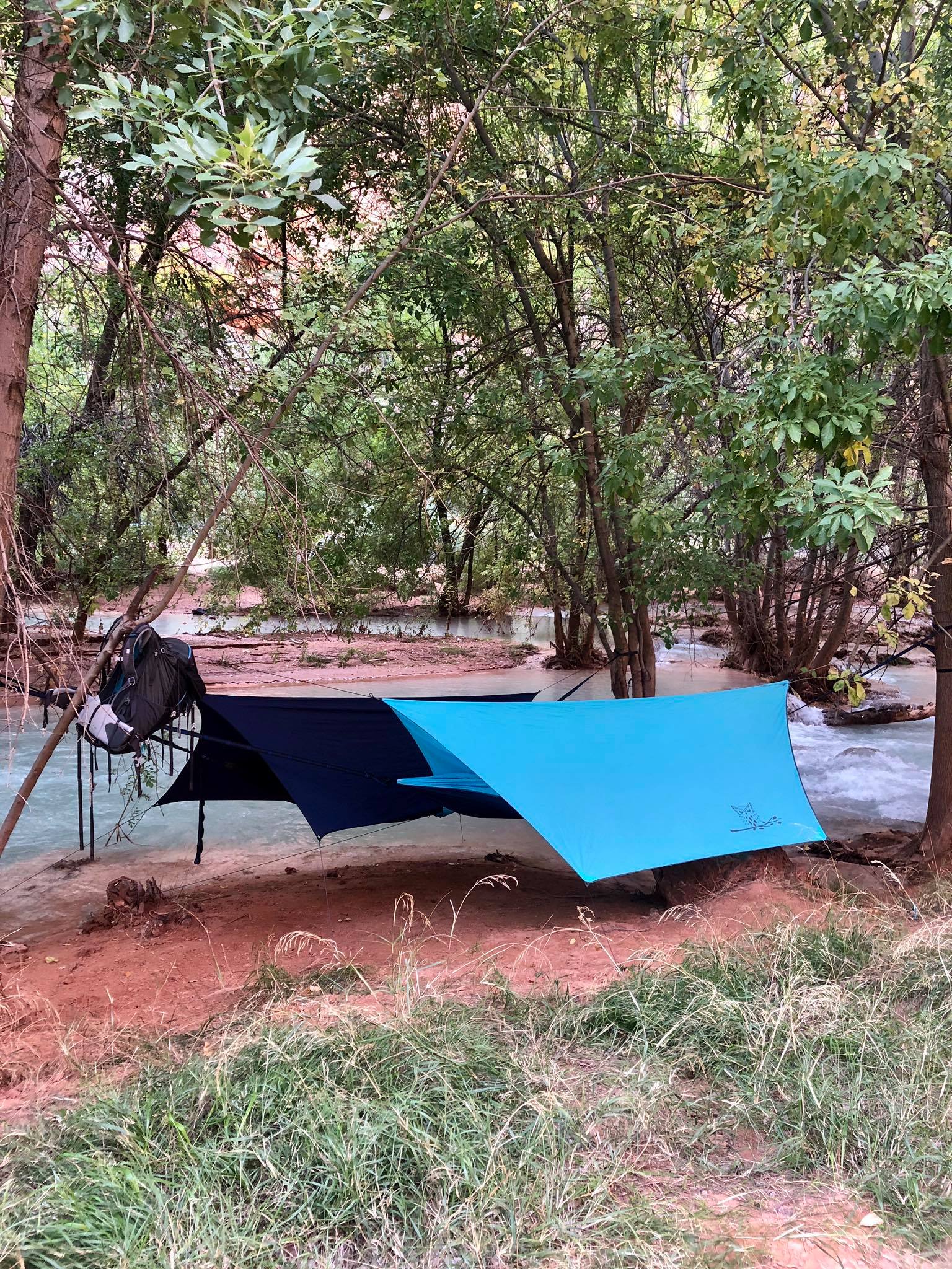 The first time Bill and I hammock camped was during our trip to Havasupai, Arizona. We brought a hammock, a bug net, and—thankfully—a tarp, which ended up being a lifesaver. The setup was super easy, and it packed down small enough to barely take up any room in our pack. We found a perfect spot by the creek, and the sound of the flowing water made it incredibly easy to fall asleep. I also loved being off the ground after a long day of hiking—it really helped ease the soreness in my hips. The tarp came in handy not just for rain and debris from critters above, but also for some privacy when changing clothes. While a special hammock sleeping pad can help keep you warmer and more stable, I found it wasn’t necessary for that trip. The biggest challenge we’ve run into with hammock camping is finding the right trees—some places don’t allow it, and others just don’t have the right spacing or sturdy options. Always check the rules and plan ahead.