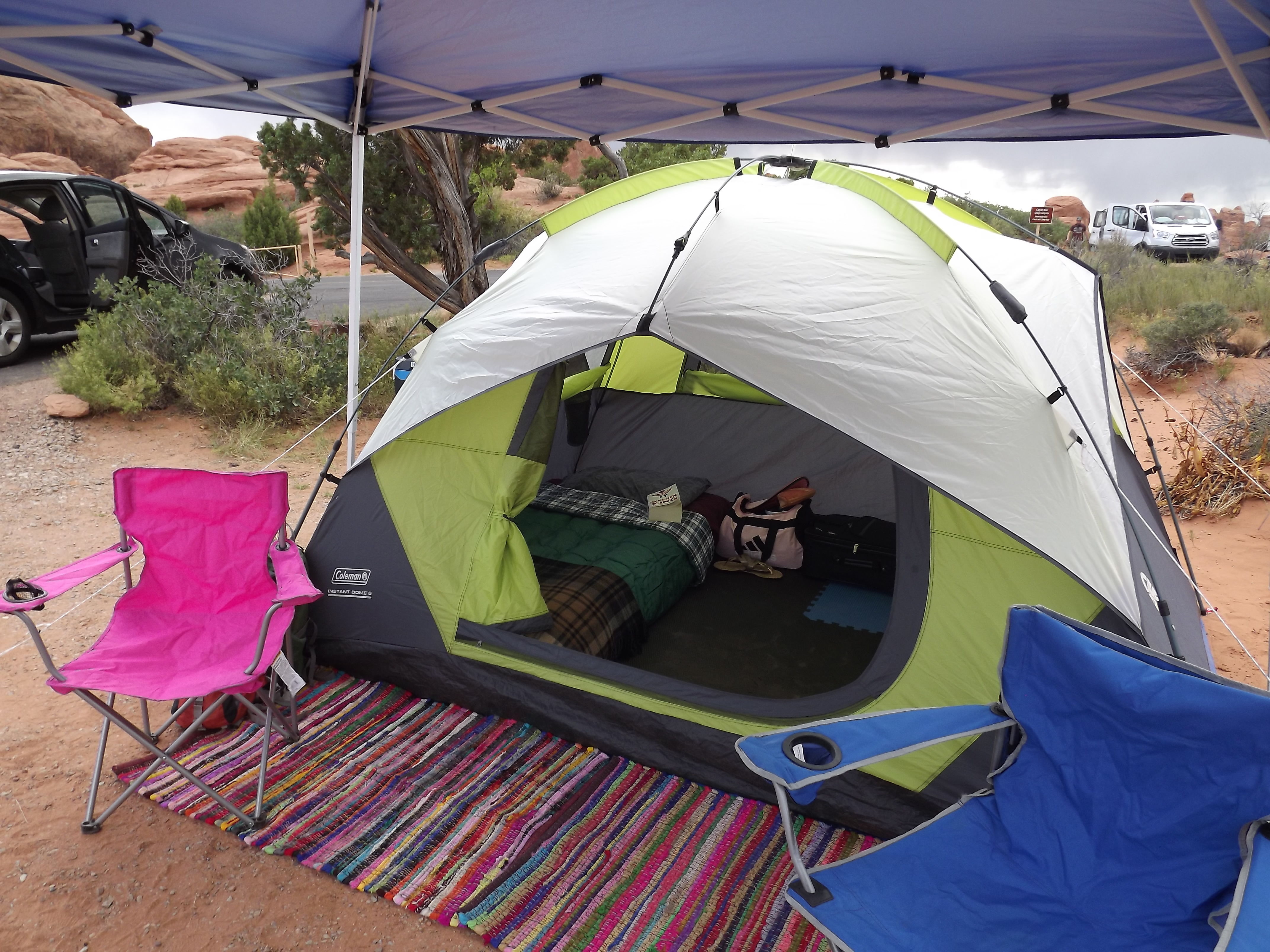 When we’re camping at a single location or want more space, we’ll often bring along a standard four-person tent. It gives us extra room for the dogs, or if Greg’s with us and we’re using the travel trailer, it becomes his own space. It’s also nice to carry a standard tent as a backup in case friends join us—everyone gets their own private sleeping quarters without overcrowding the trailer or vehicle.