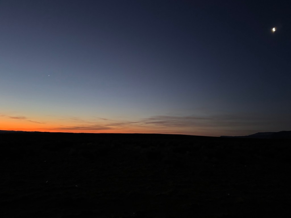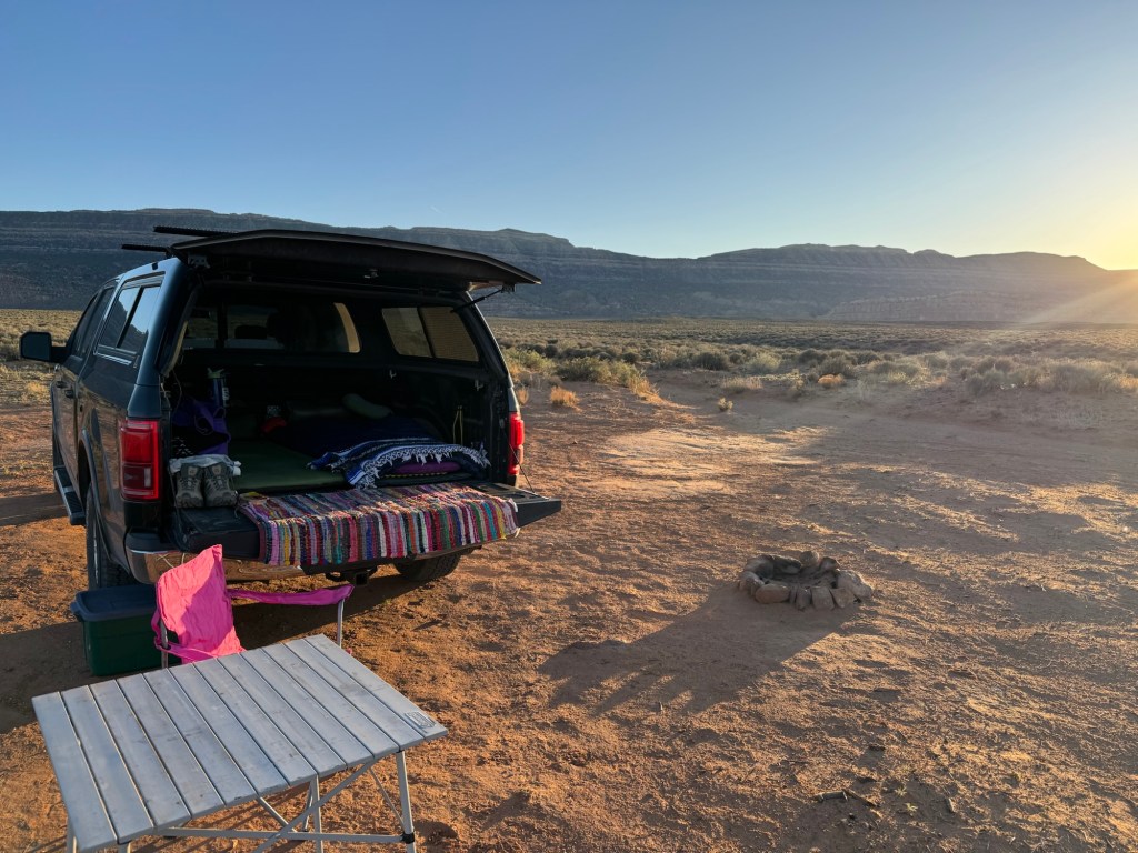 The first night brought strong desert winds, so I crawled into the back of the truck and cued up a movie. With my cozy setup and the wind howling outside, it felt like my own little hideaway in the wild. One of my favorite parts about camping here is watching the stars through the truck windows—and this night, the dark sky put on a show before the moonrise. I stepped out into a world of dark silence—no city lights, no distractions. Just a vast expanse of stars, more than you think your eyes can take in.