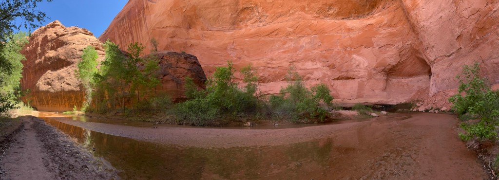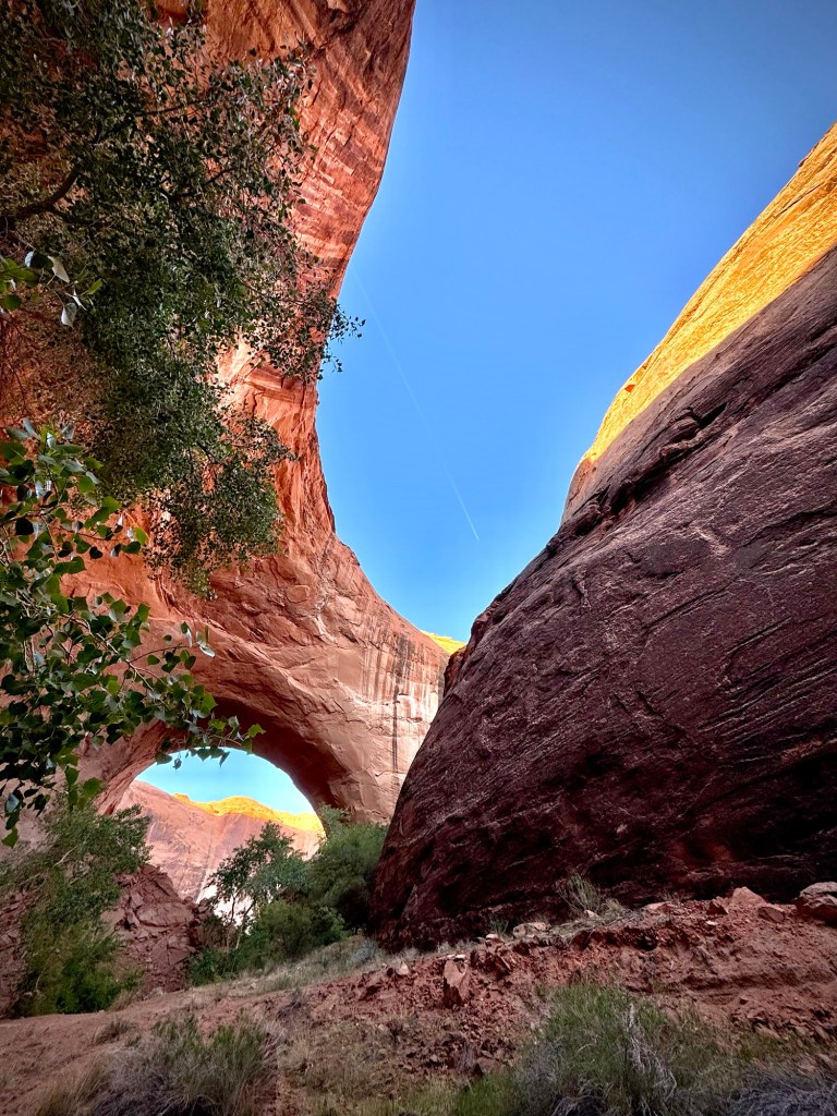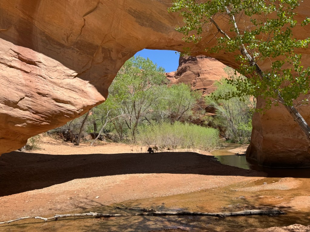 As the sun set, I watched the light shift on Jacob Hamblin Arch, a natural sculpture in constant motion. The canyon echoed with distant birdcalls and the sound of wind through cottonwoods. I wasn’t entirely alone—another couple was camped nearby, just around the bend—but it was quiet enough that I felt like I had the entire place to myself. It was peaceful, serene, and exactly the kind of solitude I came for.