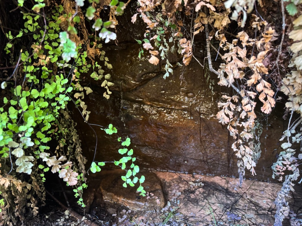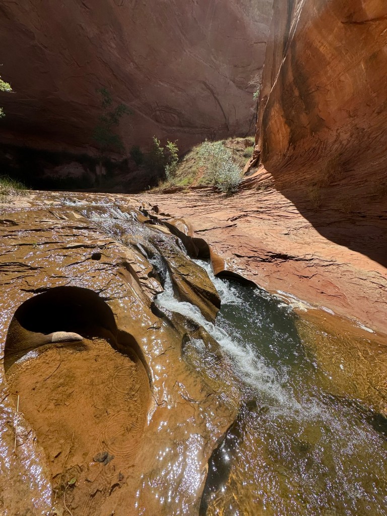 On my way back, I stopped at Swiss Cheese Falls, one of my favorite spots in the gulch. It’s a playful little section of canyon—smooth rock worn into natural pools by the flowing water. I took a break to soak my feet and feel the cool stream against my skin.
