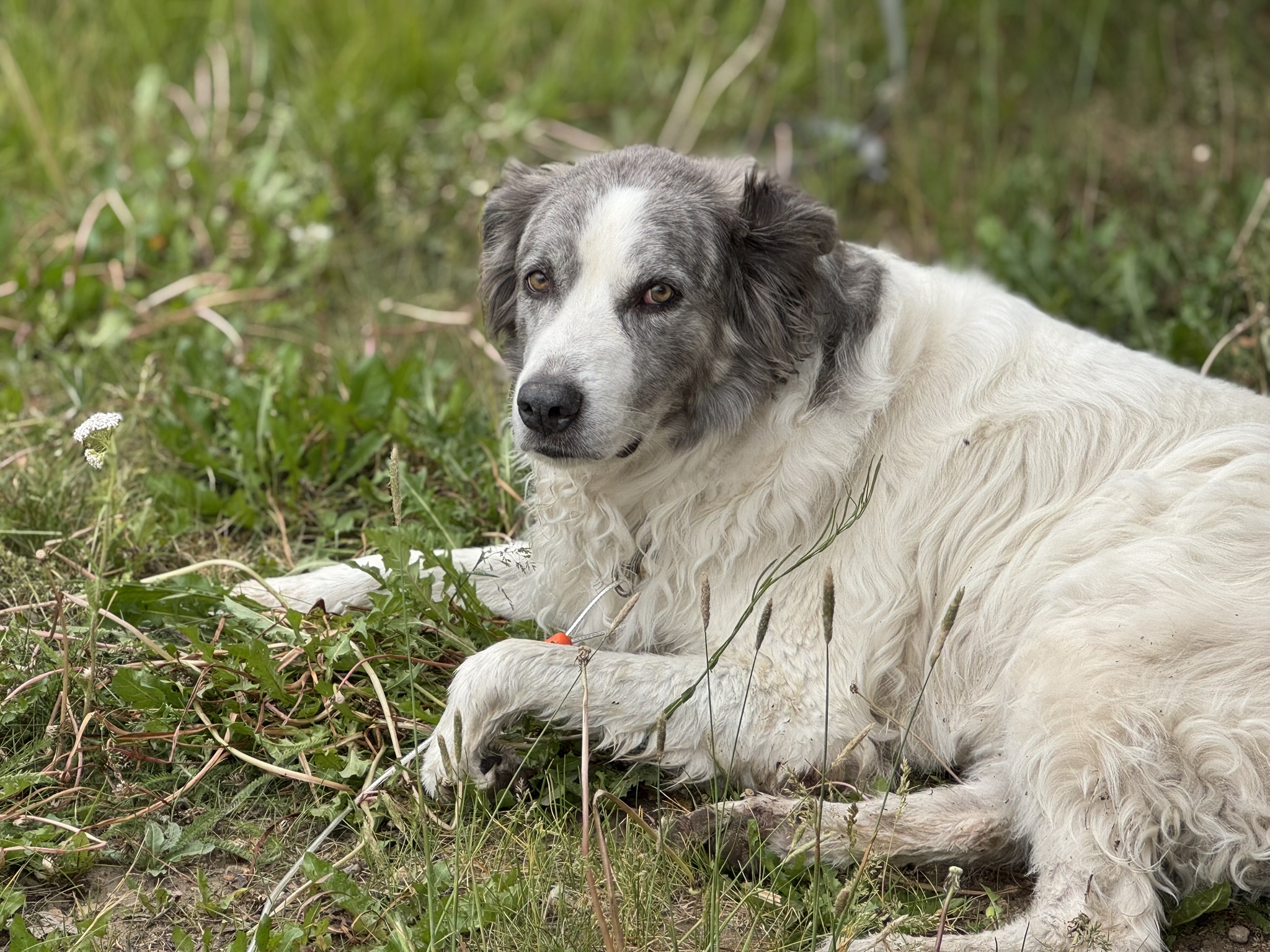 Bill and the dogs ventured through a mix of boulders and fire-cleared meadows, where new grasses have pushed their way through the ash and stone. The dogs were in their element—Lennon perched like a king atop a massive granite boulder, tongue lolling and eyes bright, while Dasher trotted below, nose to the ground and tail wagging. You could feel their joy radiating from the hillside.