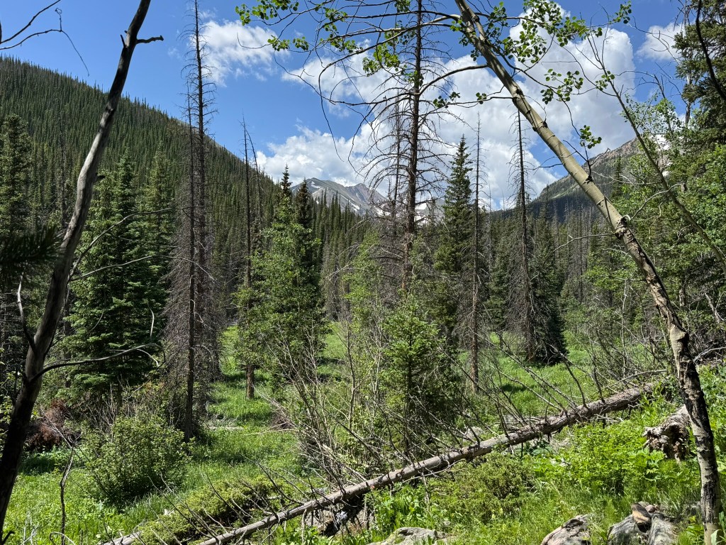 We found a peaceful dispersed campsite surrounded by a patchwork of life and loss—reminders of the 2020 Cameron Peak Fire still linger in the standing dead trees, but green shoots of recovery are everywhere. Bright wildflowers danced in the breeze. Chipmunks darted through downed timber. And in the early mornings, birdsong filled the cool, pine-scented air.