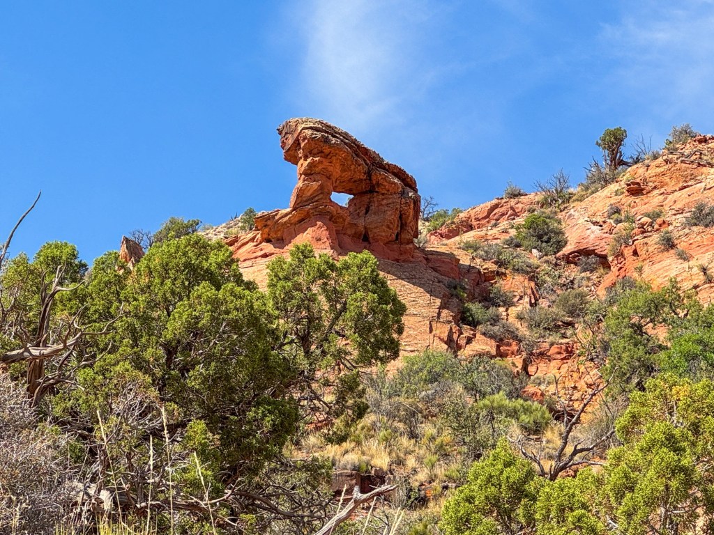 Just before entering the canyon, we came upon a stunning keyhole arch carved naturally into the red rock. Sunlight streamed through its opening like a spotlight, and we paused soaking in the moment. Some features don’t just catch your eye—they invite you to linger.