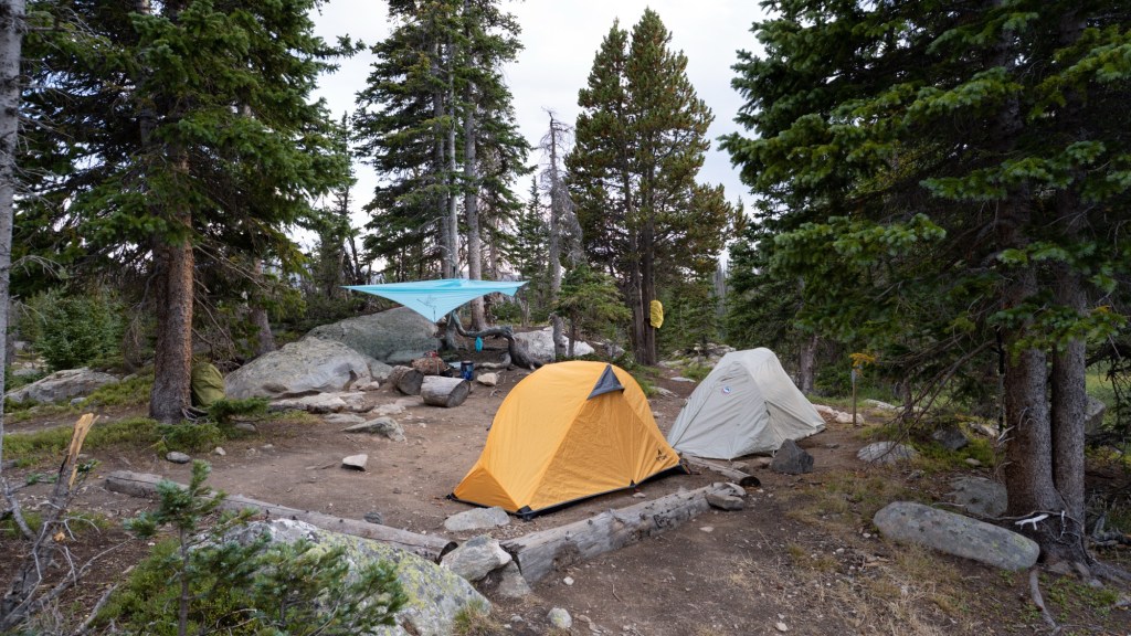 The air was cooler now, the hardest climb behind us. From there, the trail undulated through pockets of living forest, wrapping around Comanche Peak. Thunder rumbled in the distance, and with less than a mile to go to our campsite, the sky split with lightning. We quickly pulled on our rain gear and hunkered down, watching the valley below receive a much-needed drink of water. And then, as suddenly as it had arrived, the storm passed. Sunlight broke free once more, sparkling on the wet leaves around us.
