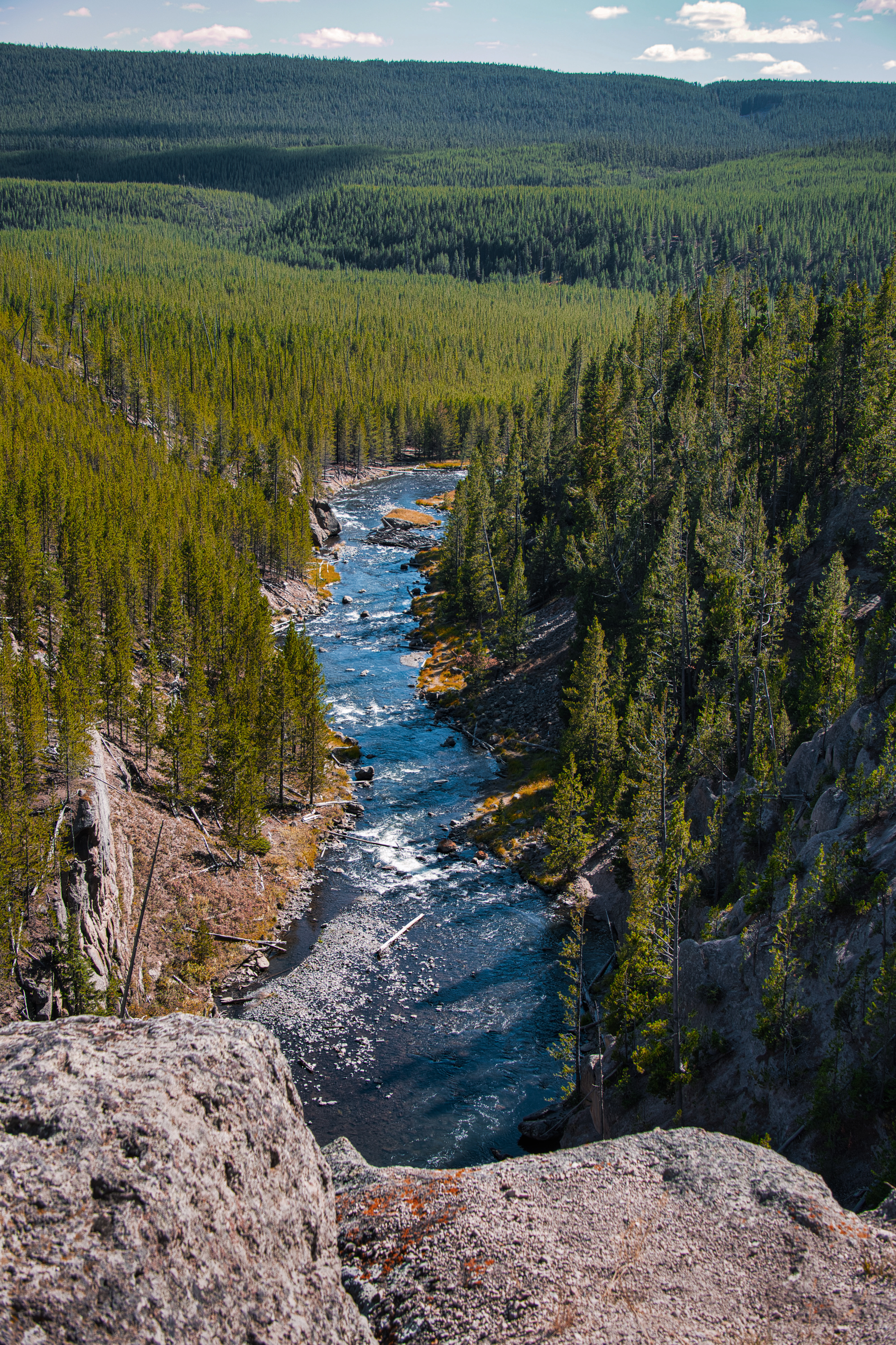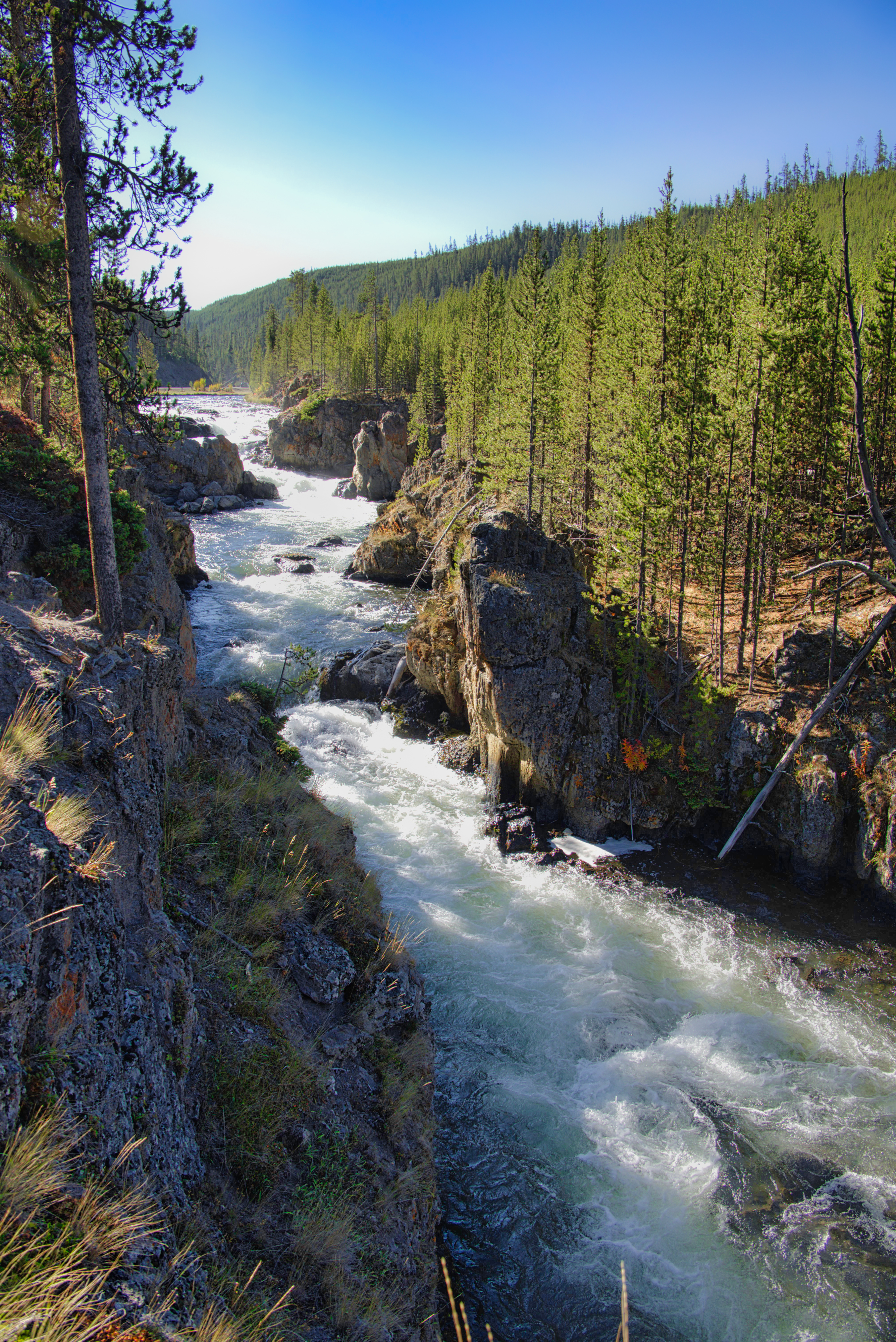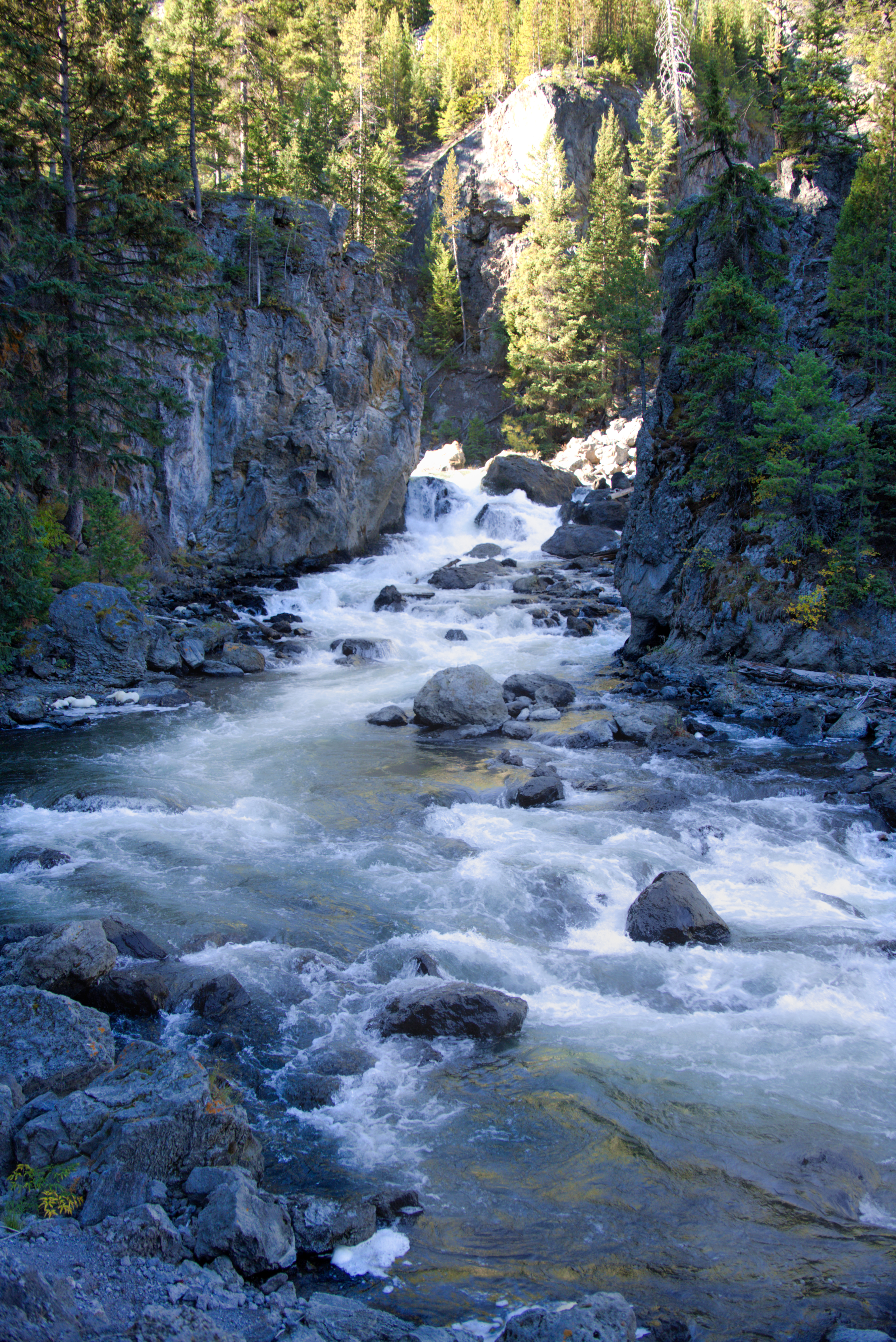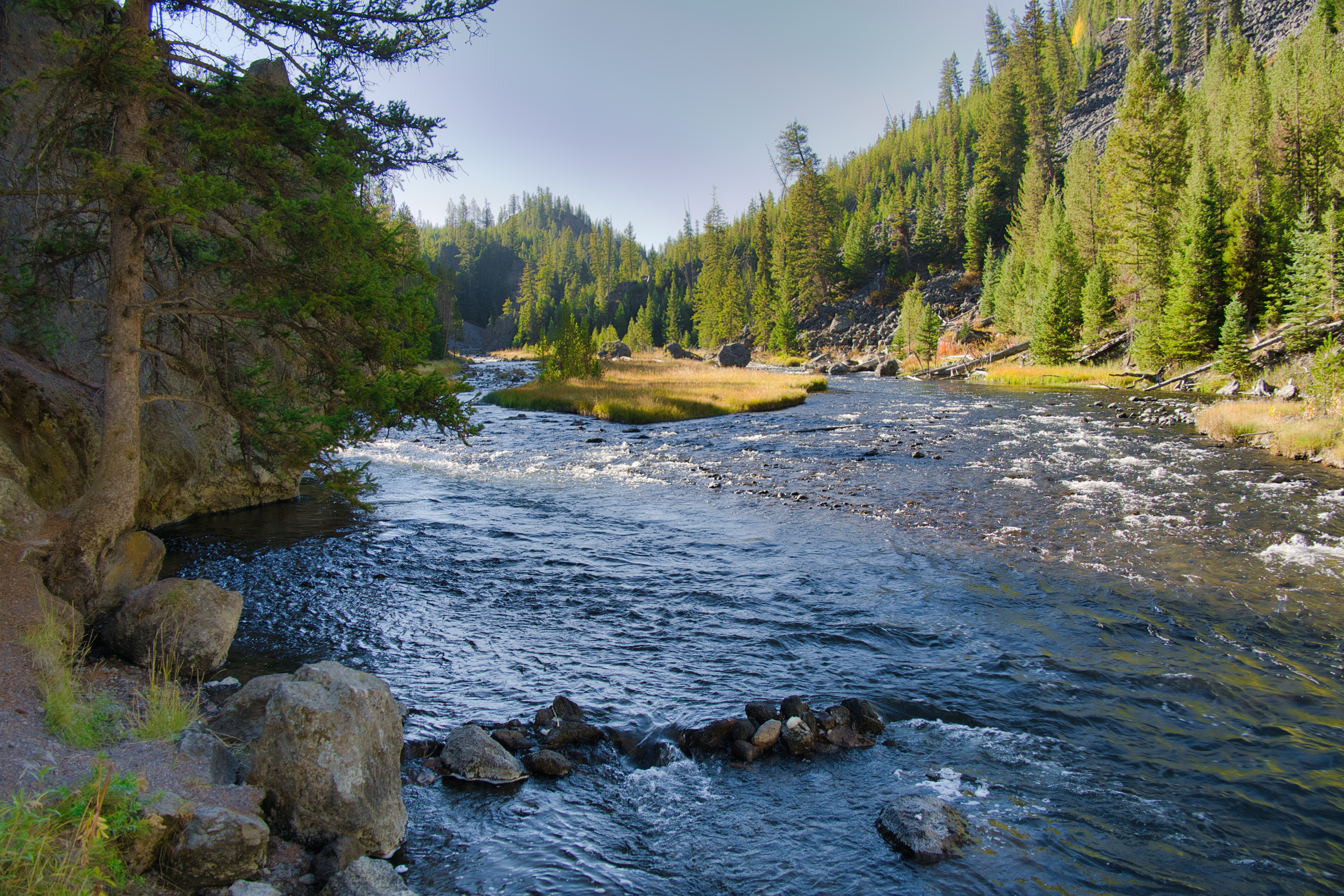 The next morning was brisk, our breath visible in the cool air, but we knew the sun would soon warm the park. Our first full day in the park began at Firehole Canyon Drive, where the Firehole River wound through walls of volcanic rock. The morning light danced across the water, softening the edges of the rugged cliffs. At Firehole Falls, the river thundered over black lava rock, a cascade both fierce and beautiful.