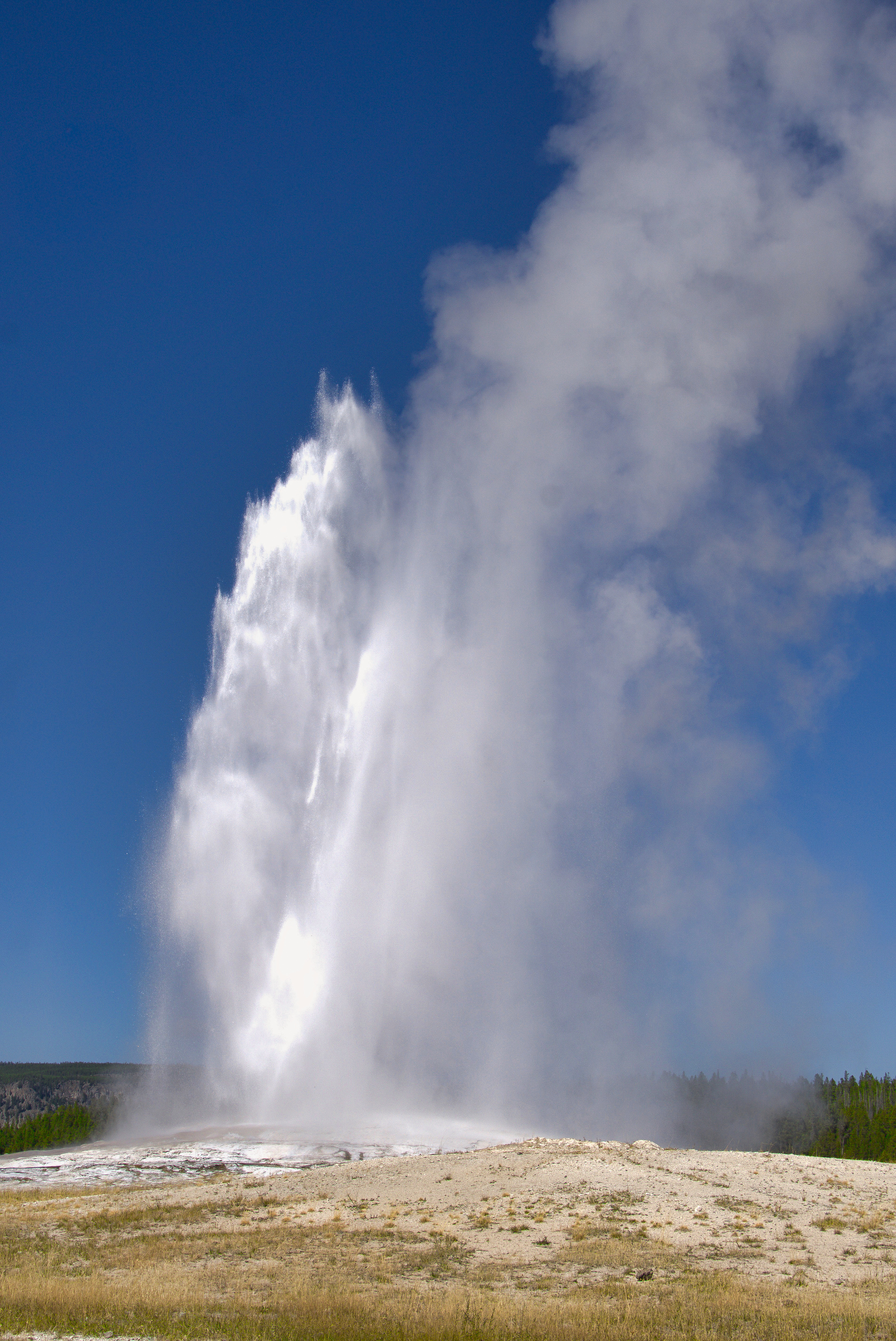 Then came the main event—the one Bill had been most eager to see: Old Faithful. We found seats and settled in, anticipation mingling with the crisp air. The wait can stretch twenty minutes or more, and this time the geyser kept us guessing, testing our patience. Finally, with a hiss and a surge, water shot skyward, steaming and sparkling in the sunlight. The eruption was shorter than Bill had expected, but still magical—a reminder that nature performs on her own terms.