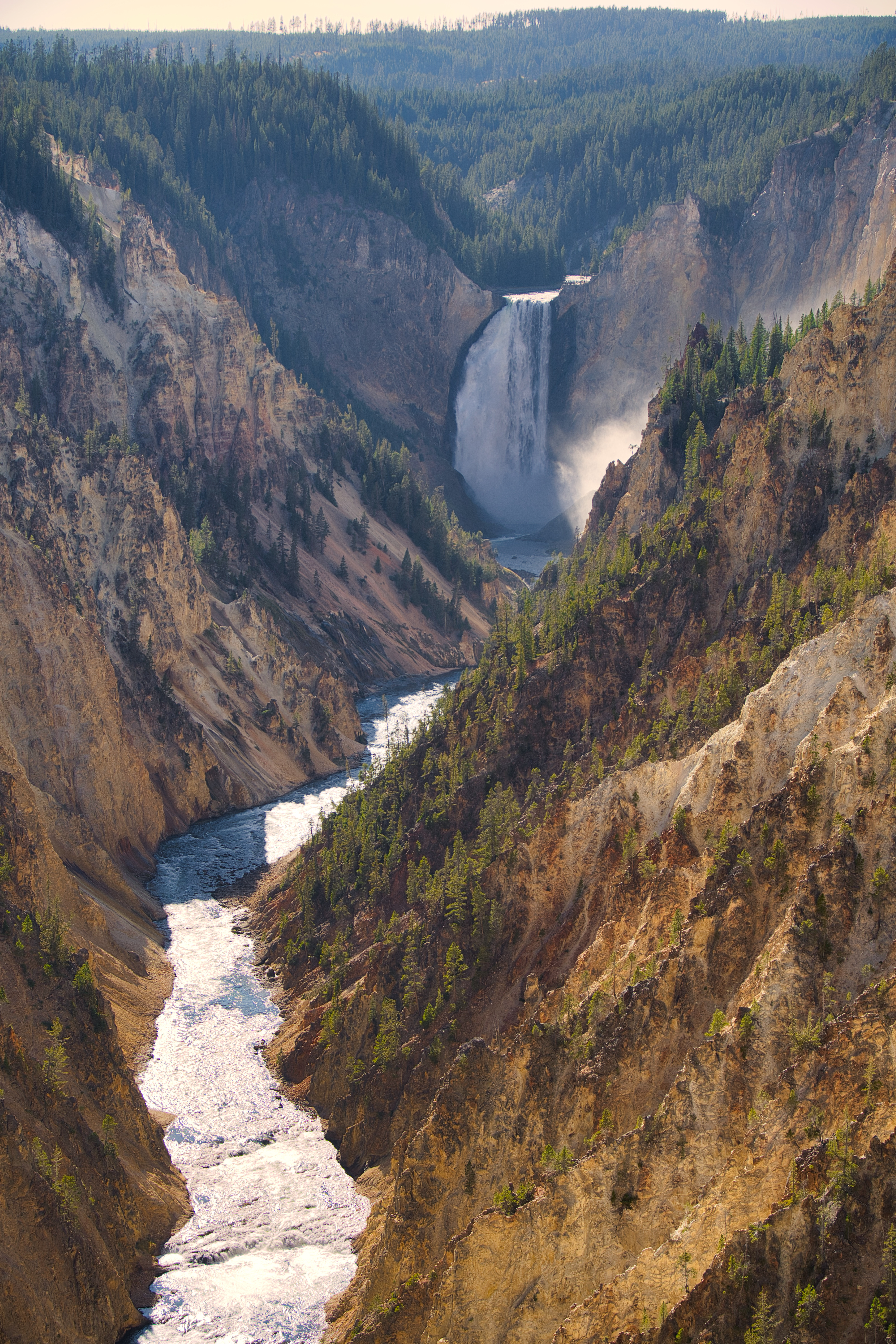 Our route carried us next to Canyon Village and the South Rim Drive. From the Clear Lake Trailhead we admired the Upper Falls of the Yellowstone River, though I felt a pang of disappointment when I learned Uncle Tom’s Trail—a favorite from my 2017 trip—was permanently closed. Still, the trail drew us onward to Artist Point, where the mighty Lower Falls roared into the canyon. The walls glowed in streaks of gold, rust, and red, painted by minerals over millennia. Along the way, I sought out something new: Crystal Falls. Hidden between the famous Upper and Lower Falls, its 129-foot plunge felt like a secret discovery, a ribbon of water veiling the canyon’s rugged heart.