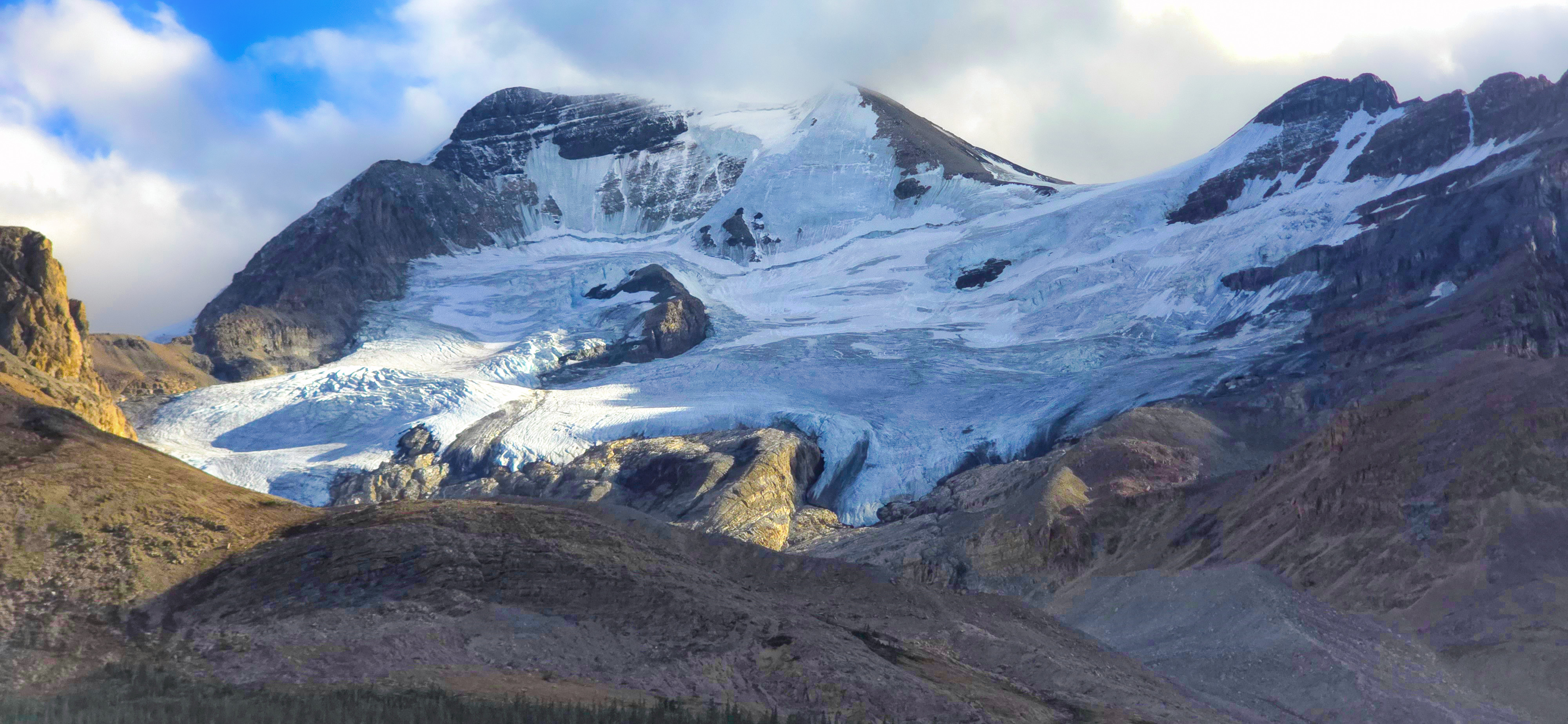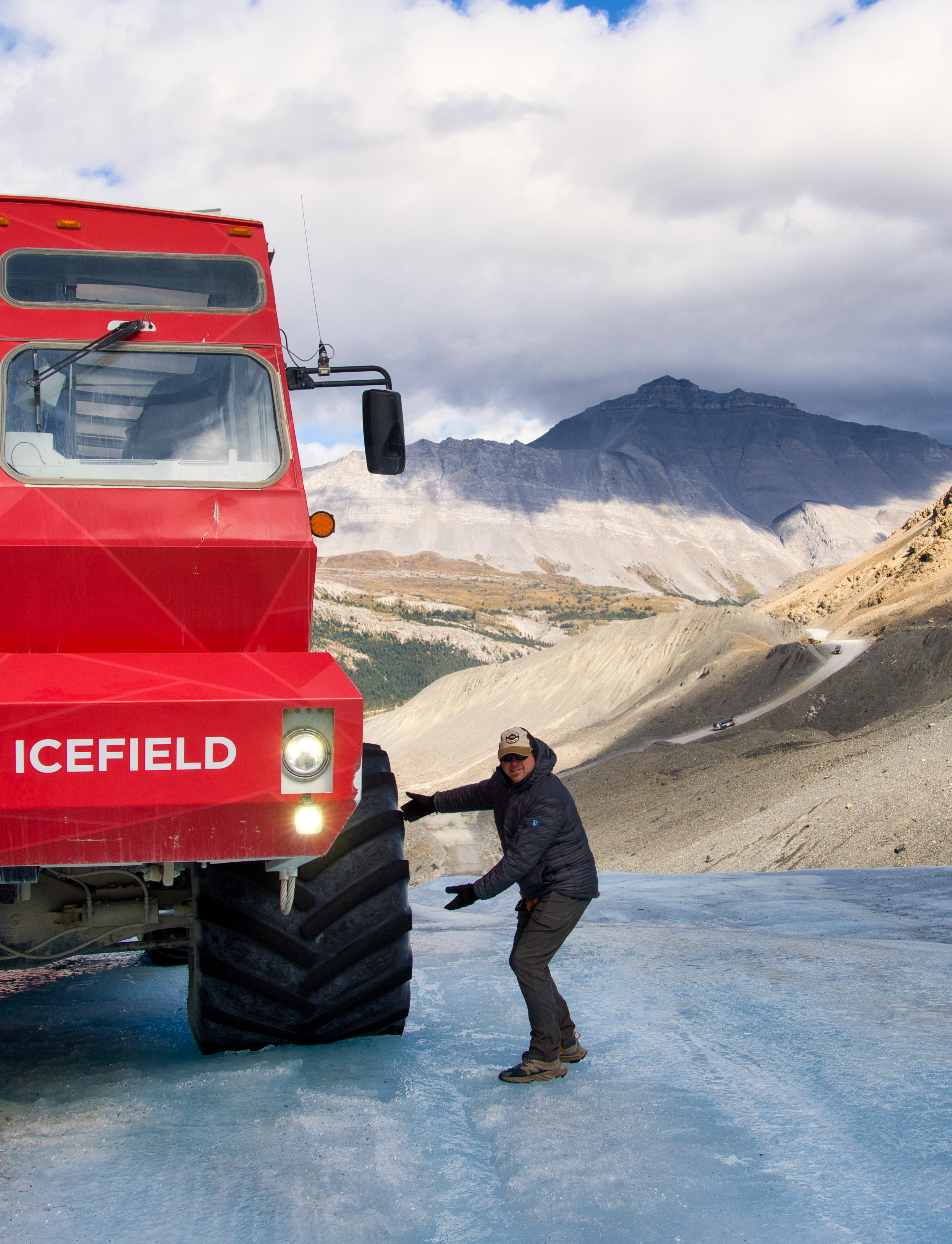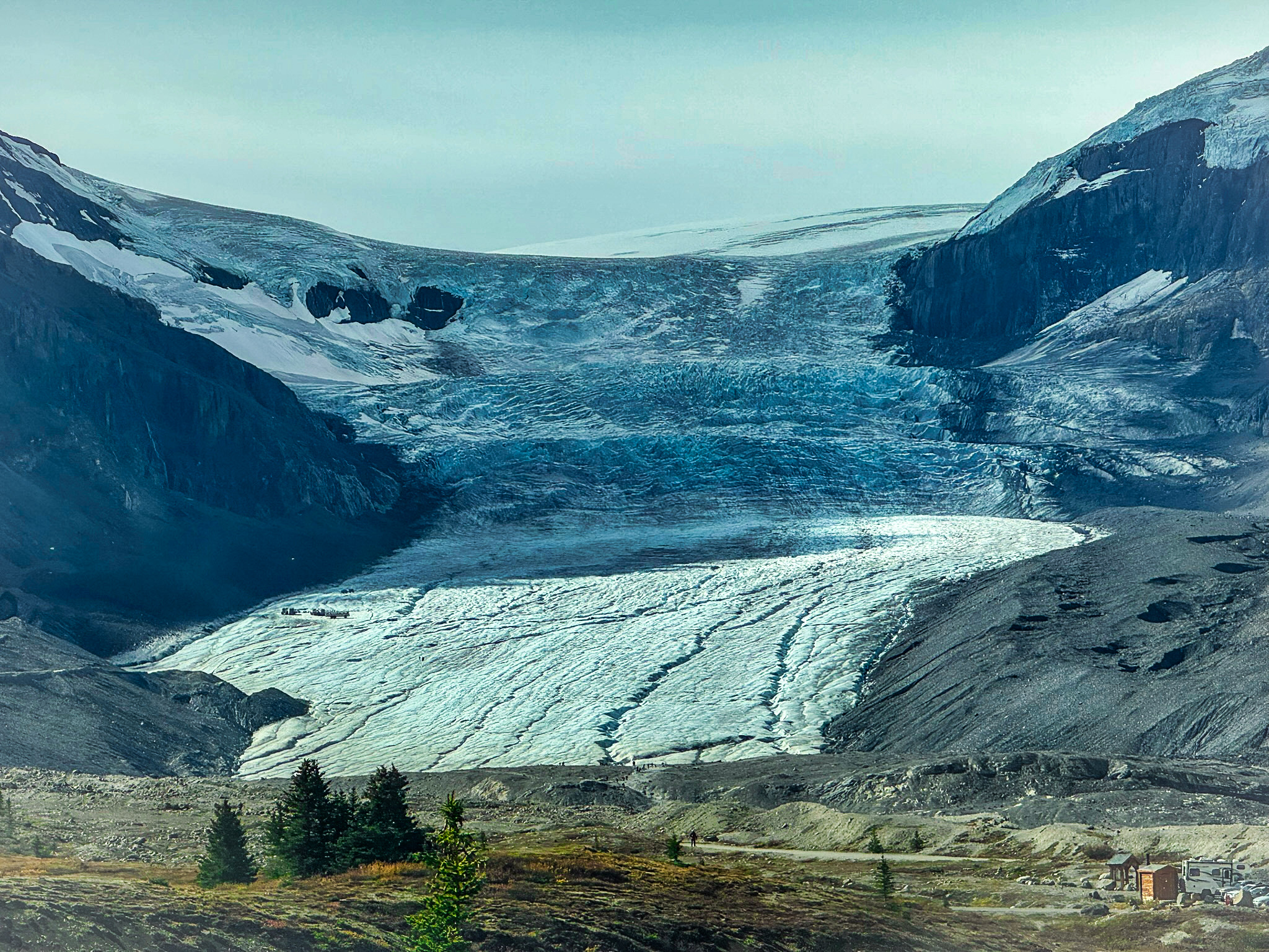Ahead, the horizon shimmered—an immense world of glaciers and peaks that seemed to breathe cold light. The highlight of the day was exploring the Columbia Icefield, a frozen giant spanning nearly 125 square miles—the largest in the Canadian Rockies and the source of six major glaciers. At its heart rises Snow Dome Peak, a geological wonder where meltwater flows toward three different oceans: the Arctic, Atlantic, and Pacific. Few places on Earth hold such a rare and remarkable distinction.