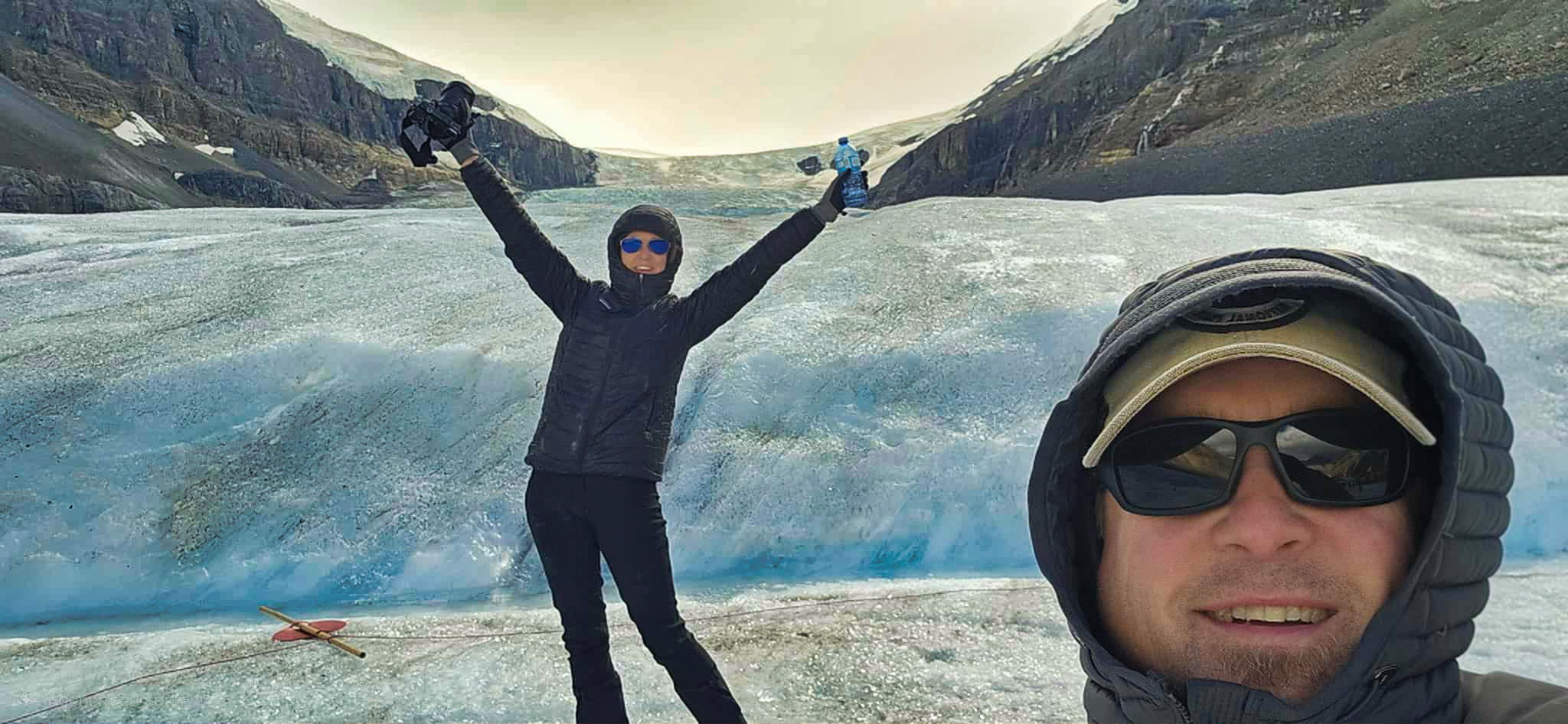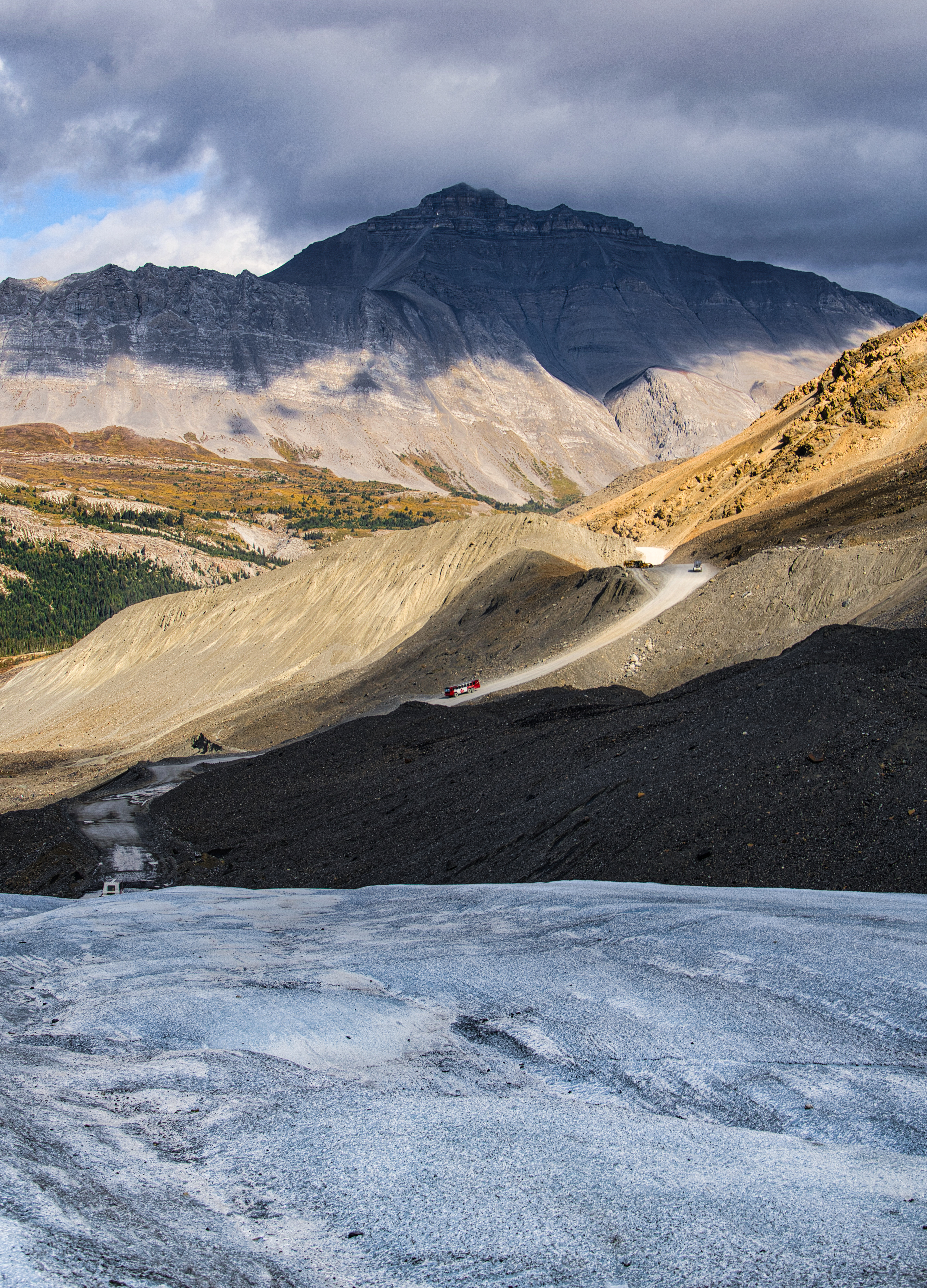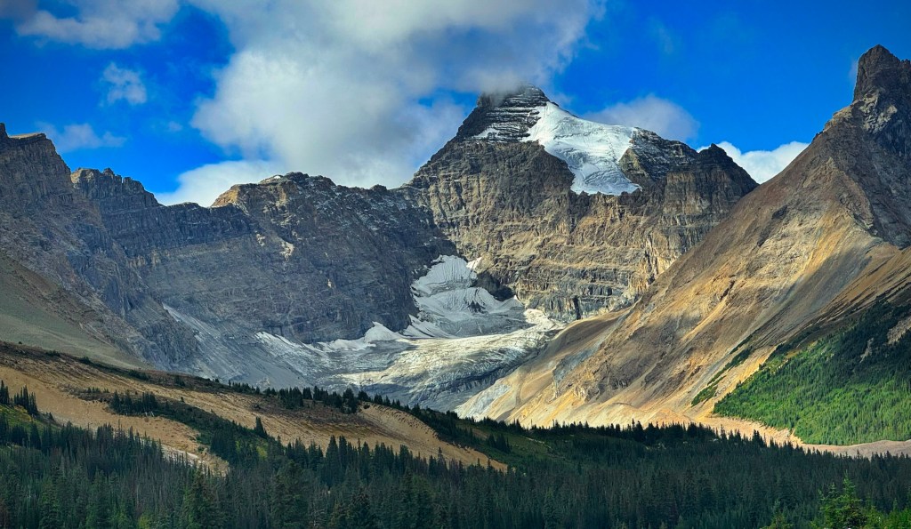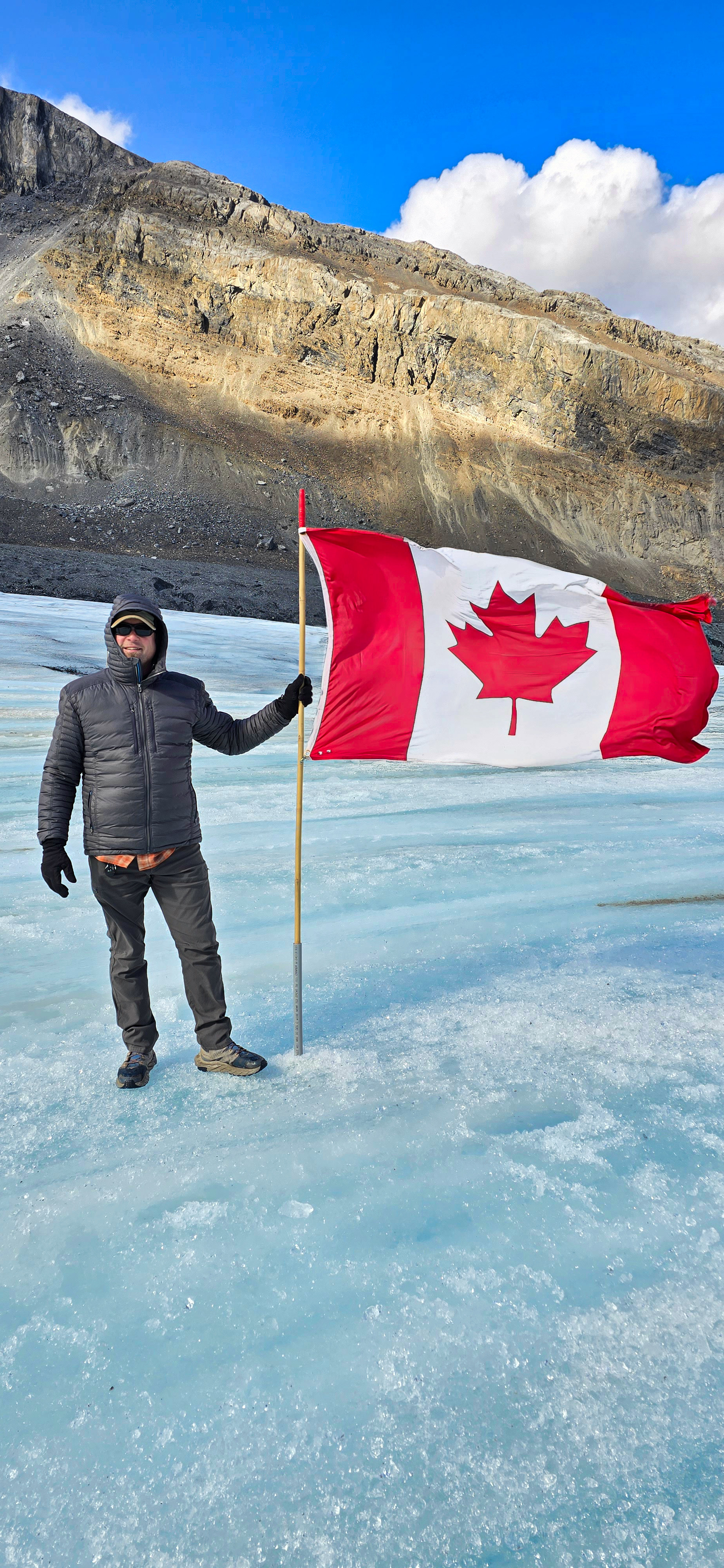 Ahead, the horizon shimmered—an immense world of glaciers and peaks that seemed to breathe cold light. The highlight of the day was exploring the Columbia Icefield, a frozen giant spanning nearly 125 square miles—the largest in the Canadian Rockies and the source of six major glaciers. At its heart rises Snow Dome Peak, a geological wonder where meltwater flows toward three different oceans: the Arctic, Atlantic, and Pacific. Few places on Earth hold such a rare and remarkable distinction.