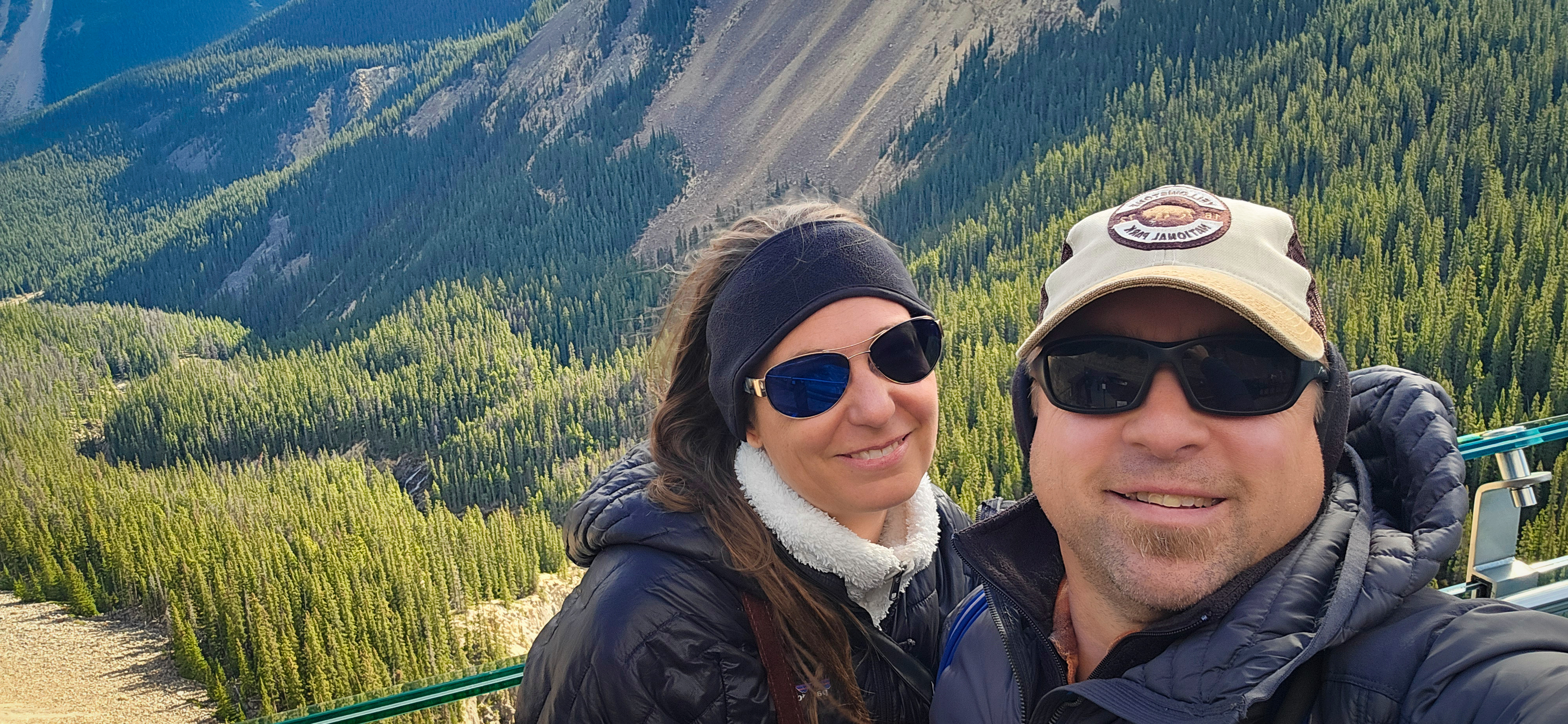 After leaving the ice, we continued to the Glacier Skywalk—a graceful arc of glass and steel suspended 918 feet above the Sunwapta Valley. The contrast from the glacier was striking: where the icefield felt grounded and ancient, the Skywalk felt light and infinite, a bridge between earth and sky.