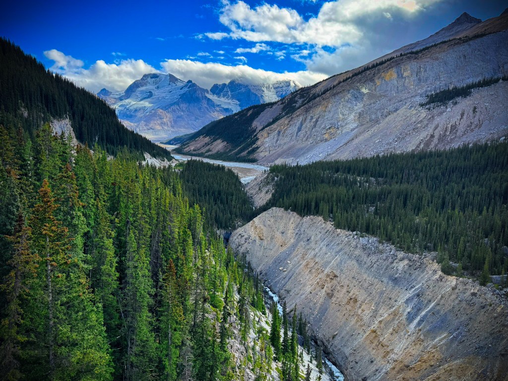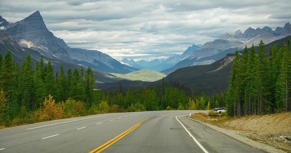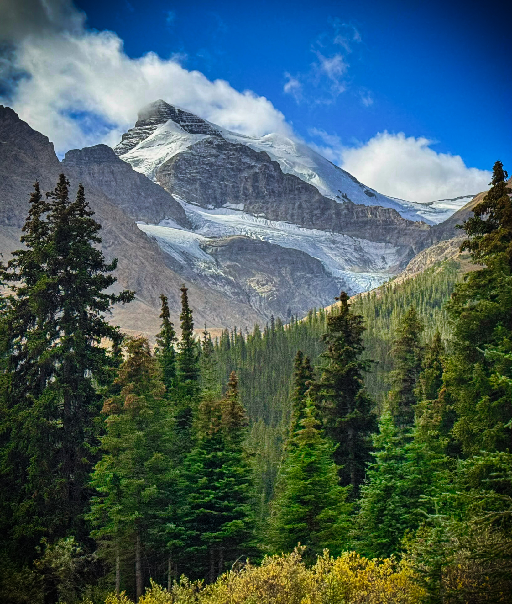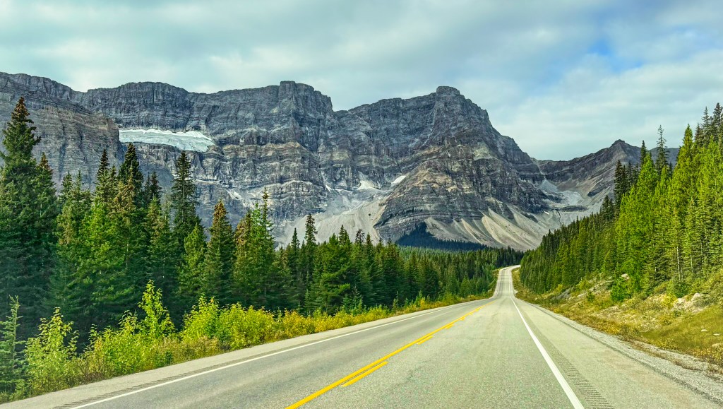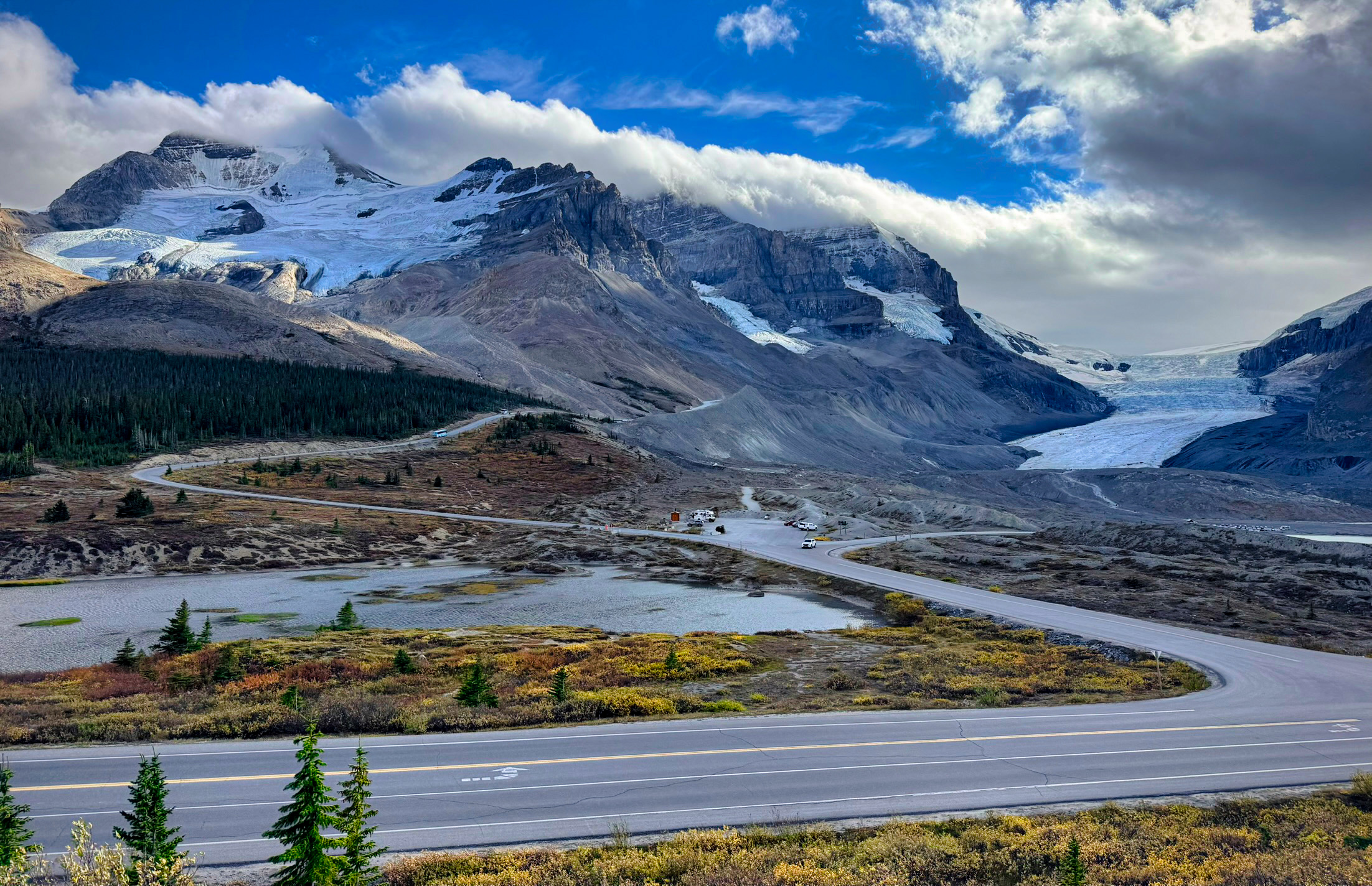 This was the day I had been dreaming about for months, the legendary Icefields Parkway, often called one of the most beautiful drives in the world. Stretching roughly 145 miles between Lake Louise and Jasper, this ribbon of road winds through a realm sculpted by ice and time. Here, the Rockies feel ancient and alive— jagged peaks crowned with snow, turquoise lakes resting like jewels, and glaciers spilling down from unseen heights.