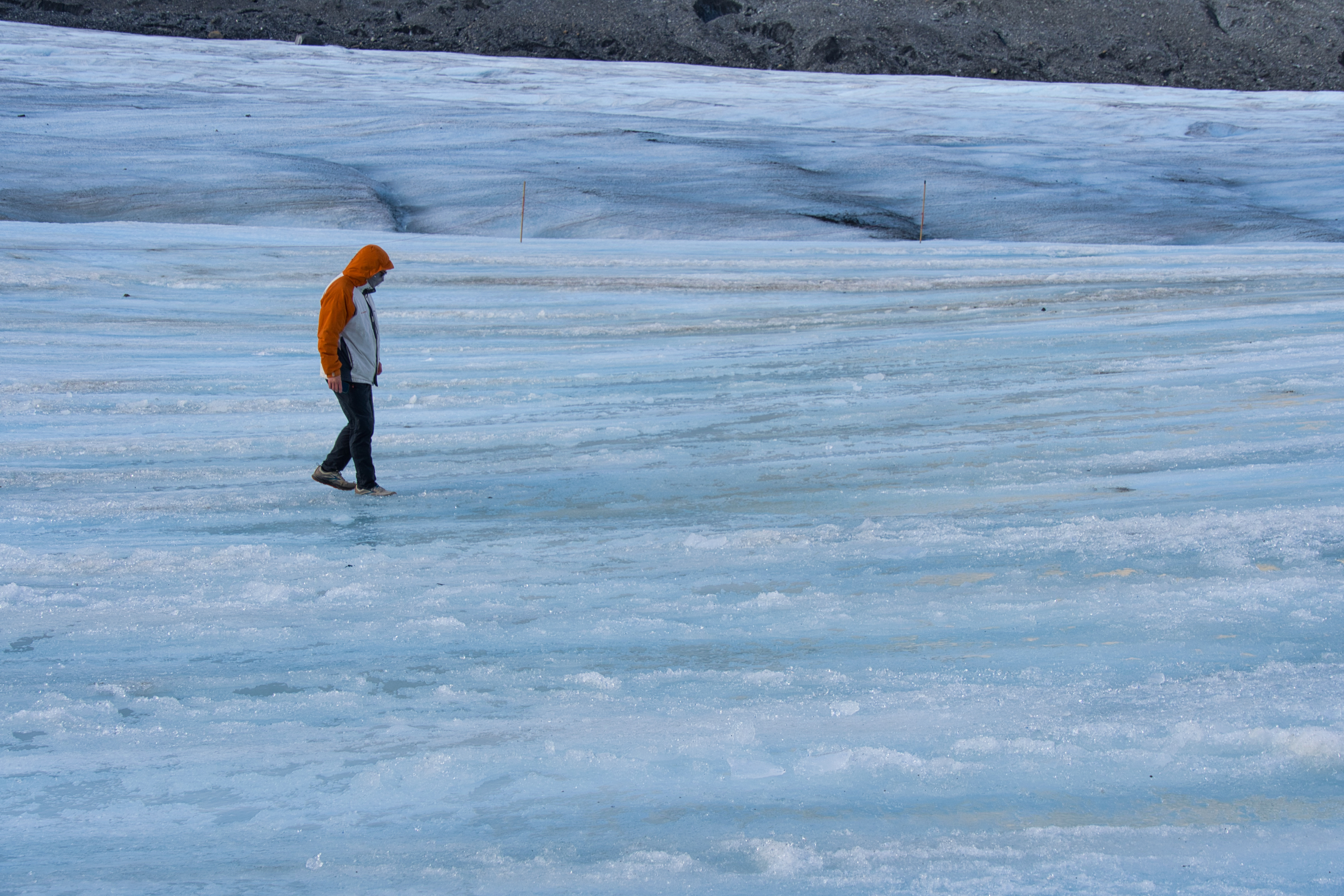 The glacier itself was mesmerizing—its surface a tapestry of crystal blue and streaked white, carved and reshaped by centuries of ice and time. Meltwater trickled across the ridges in clear, glassy rivulets, pooling in pockets that caught the pale sunlight and shimmered like glass. I knelt to scoop a handful into my bottle, the chill biting instantly at my fingertips. The water was shockingly pure and crisp—tasteless, yet somehow the best I’d ever had. Standing there, surrounded by silence broken only by the whisper of wind over ice, I felt profoundly connected to something timeless.