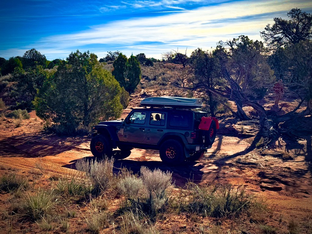 The road began with long stretches of washboard, then dipped into rutted sections carved by years of storms. Soon the sand deepened, the ruts growing over a foot tall in places, twisting and winding through juniper and open slickrock.