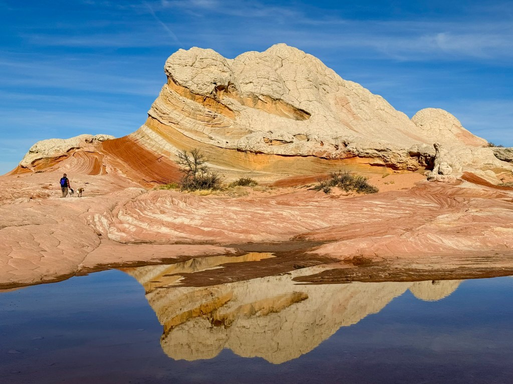 Shallow potholes held lingering pools from the last storm—still, clear mirrors reflecting the sky, the cliffs, and sometimes our own silhouettes drifting across their surface.