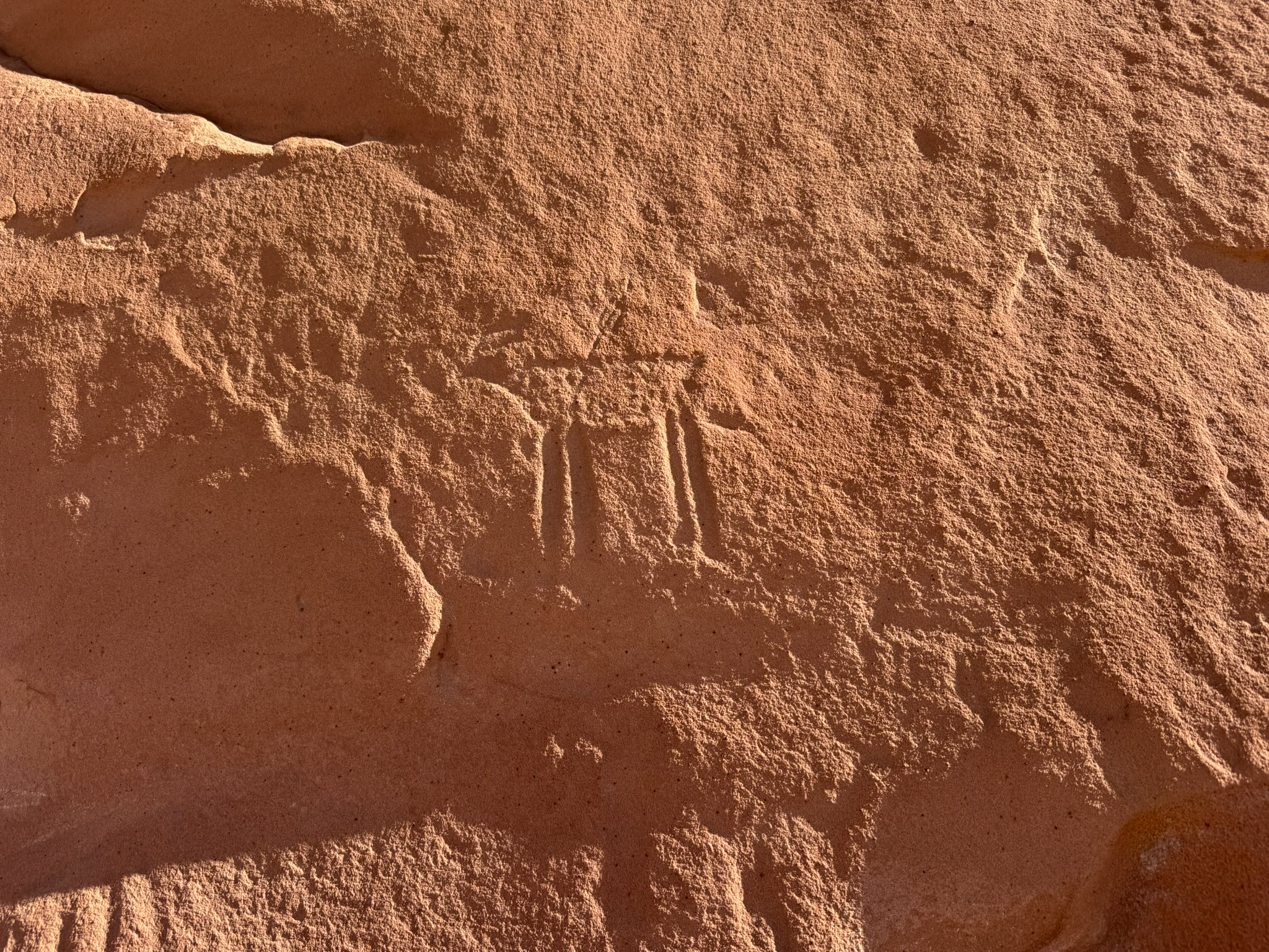 Later that afternoon, once we made it back to House Rock Valley Road, we began the drive toward camp—but the warm light and open desert were too tempting to ignore. We pulled over for one last hike, this time to the Maze Rock Art Site, a remarkable panel of pictographs tucked into a sandstone cliff.