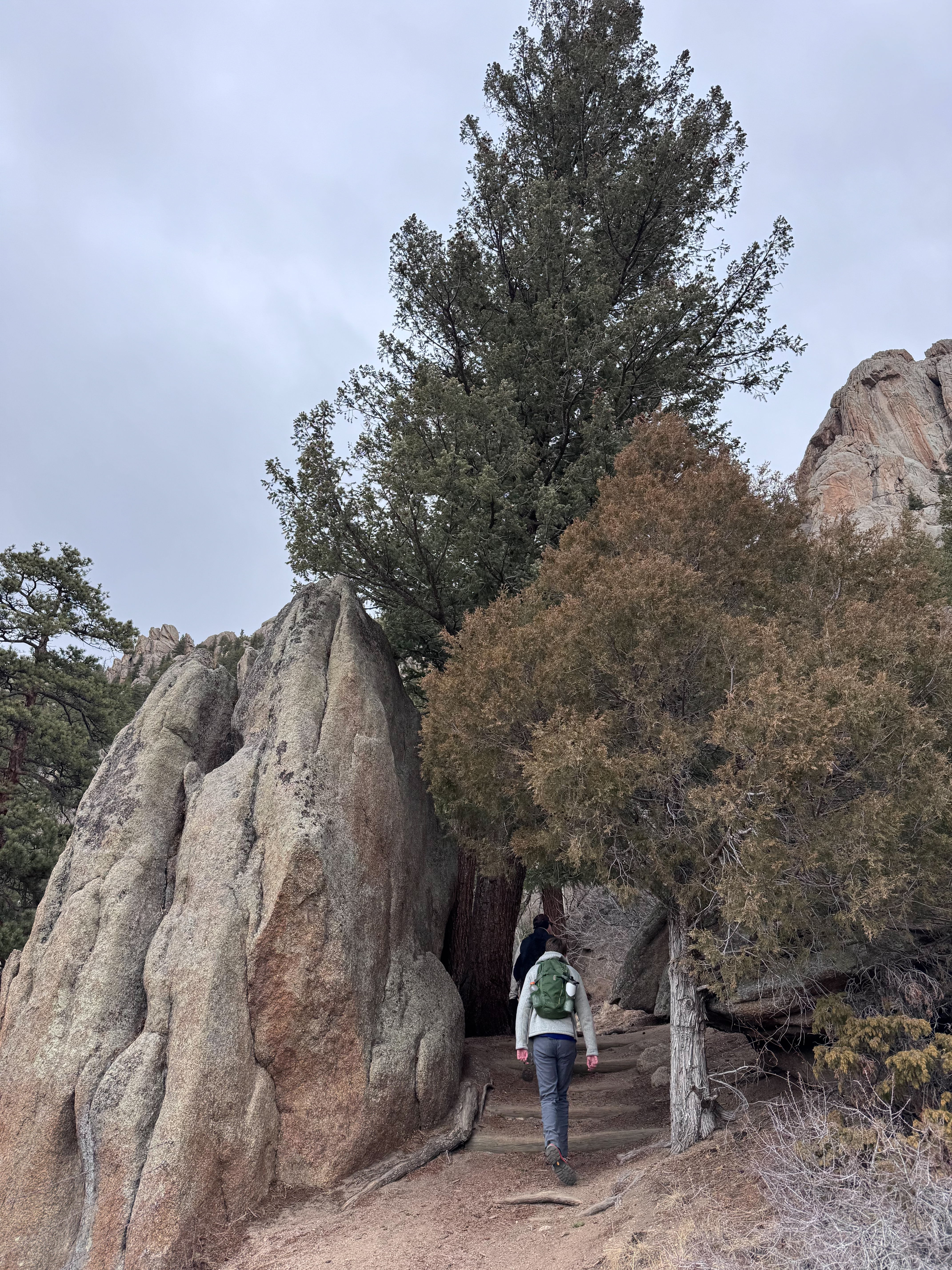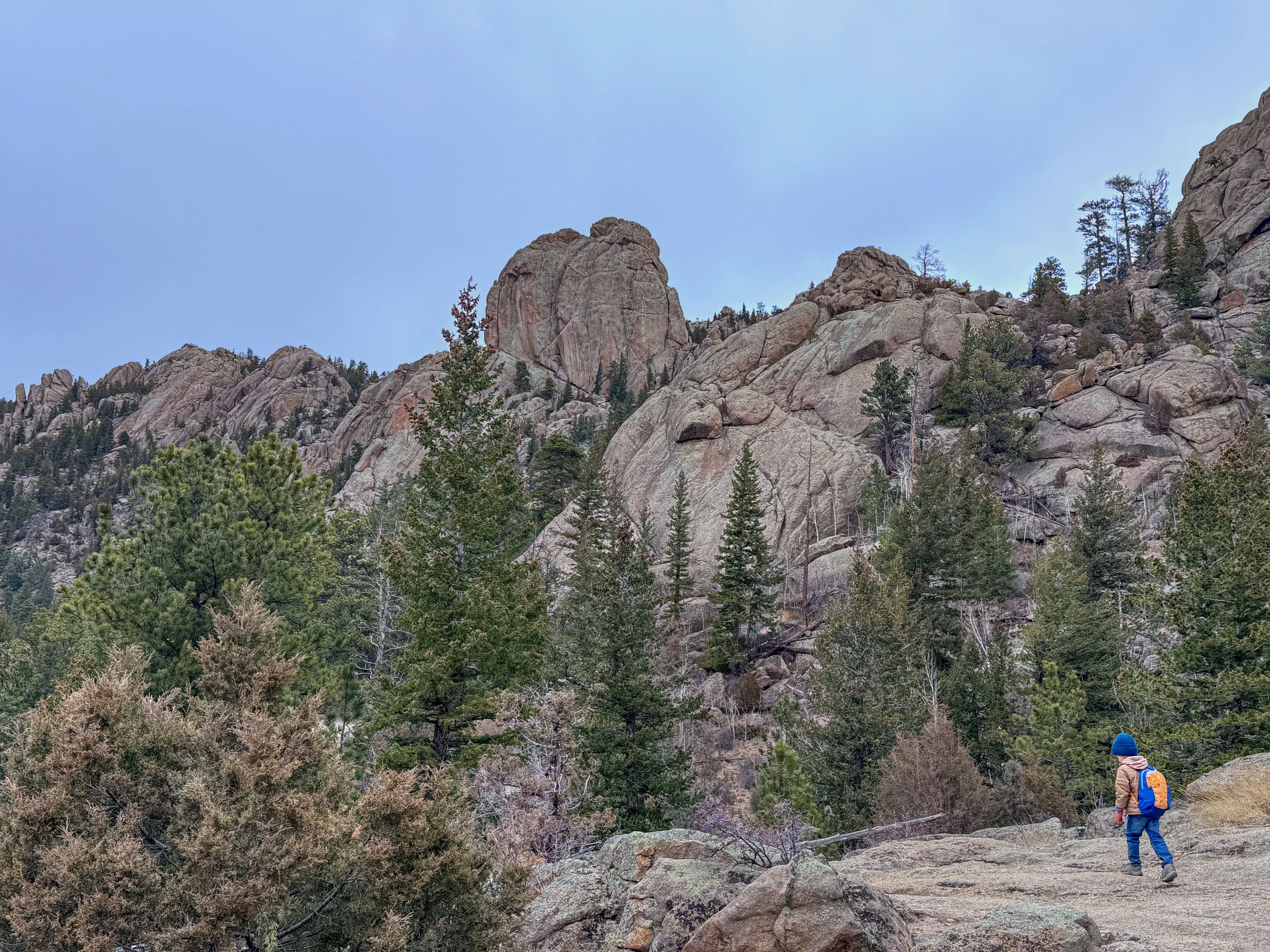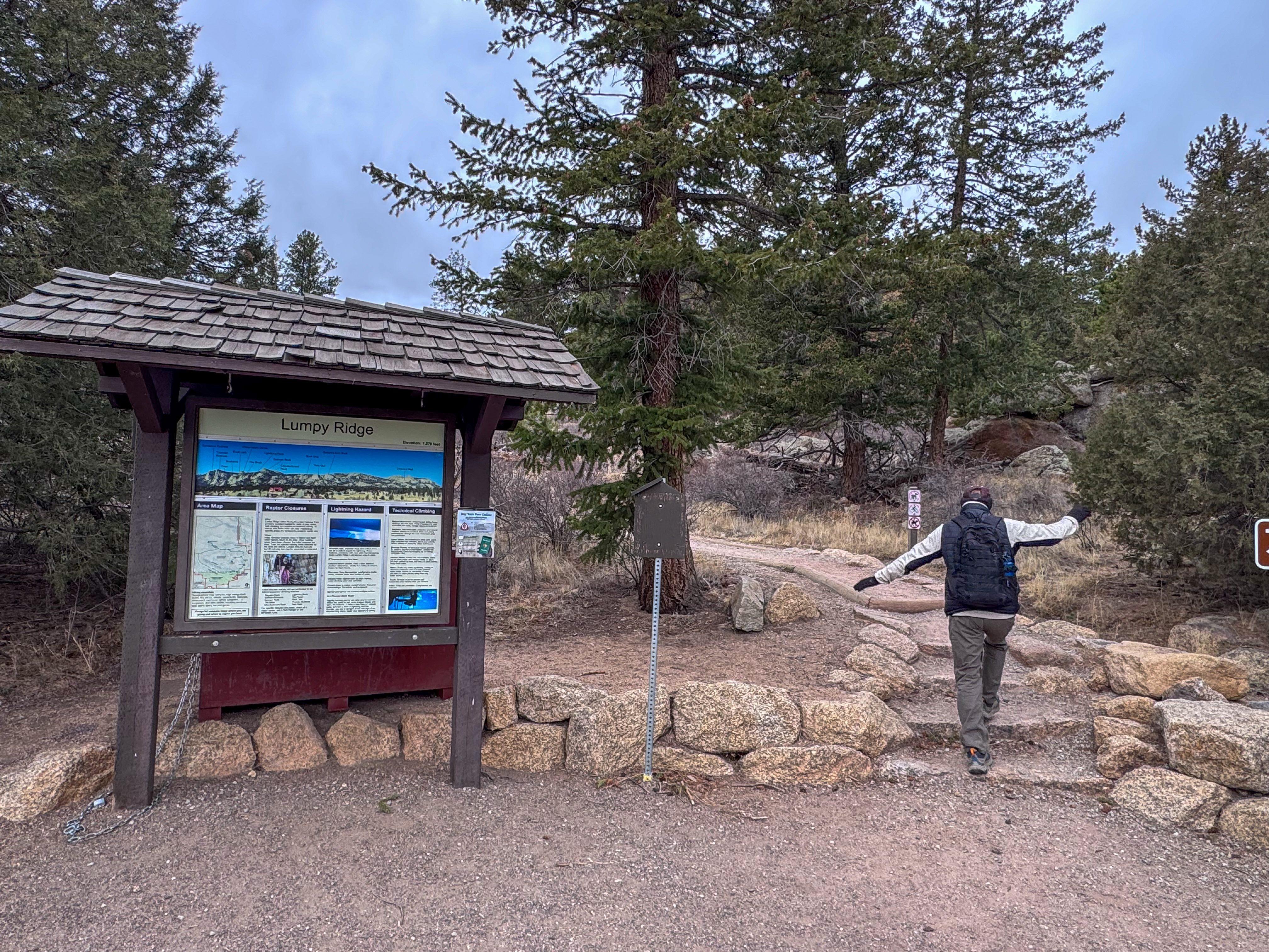 We were pleasantly surprised to find the parking lot not yet full—an unexpected gift for a holiday hike in RMNP. The morning felt quiet and calm, with dry trails and almost no snow on the ground, a clear reminder of just how mild this winter has been so far.