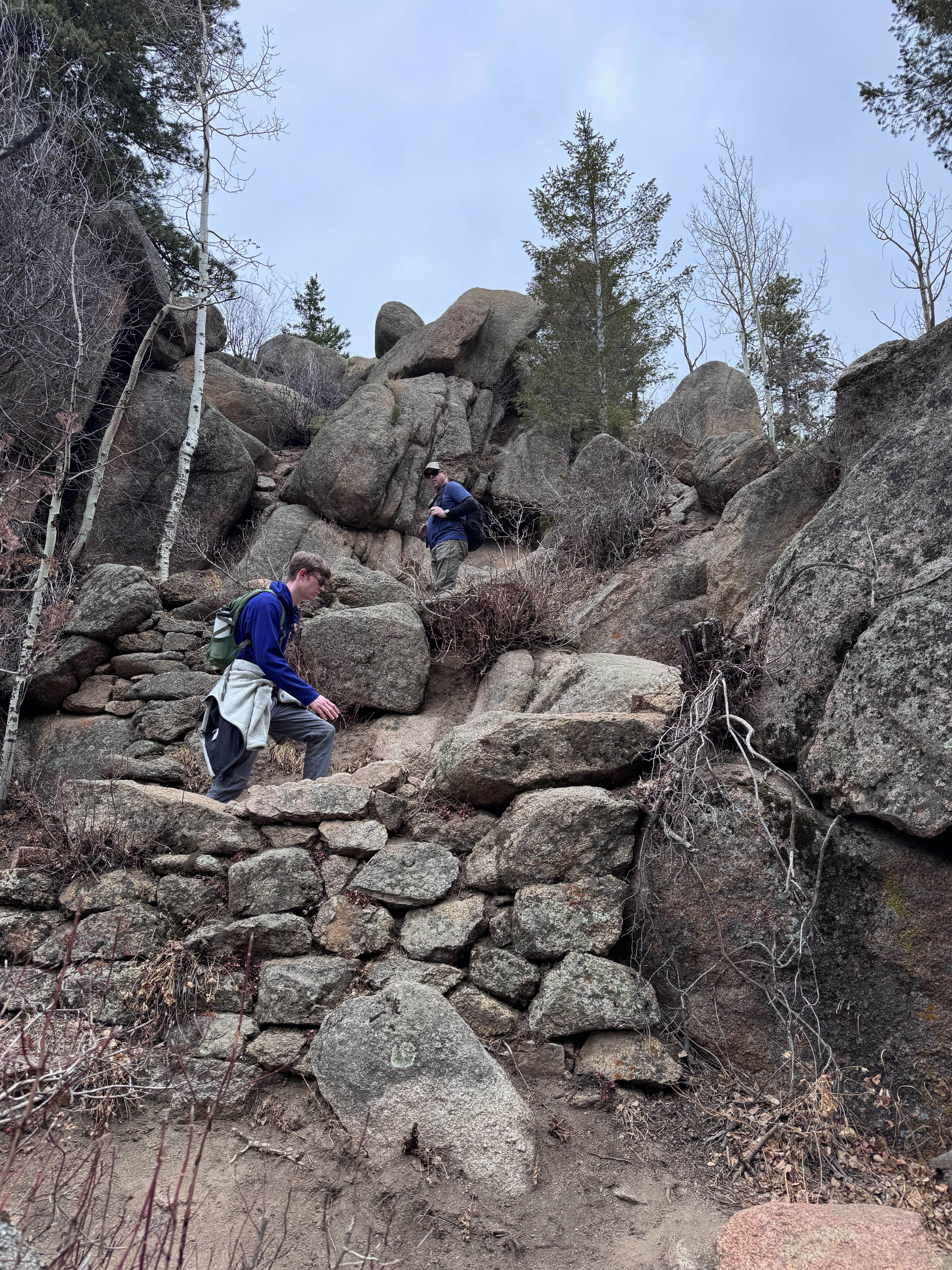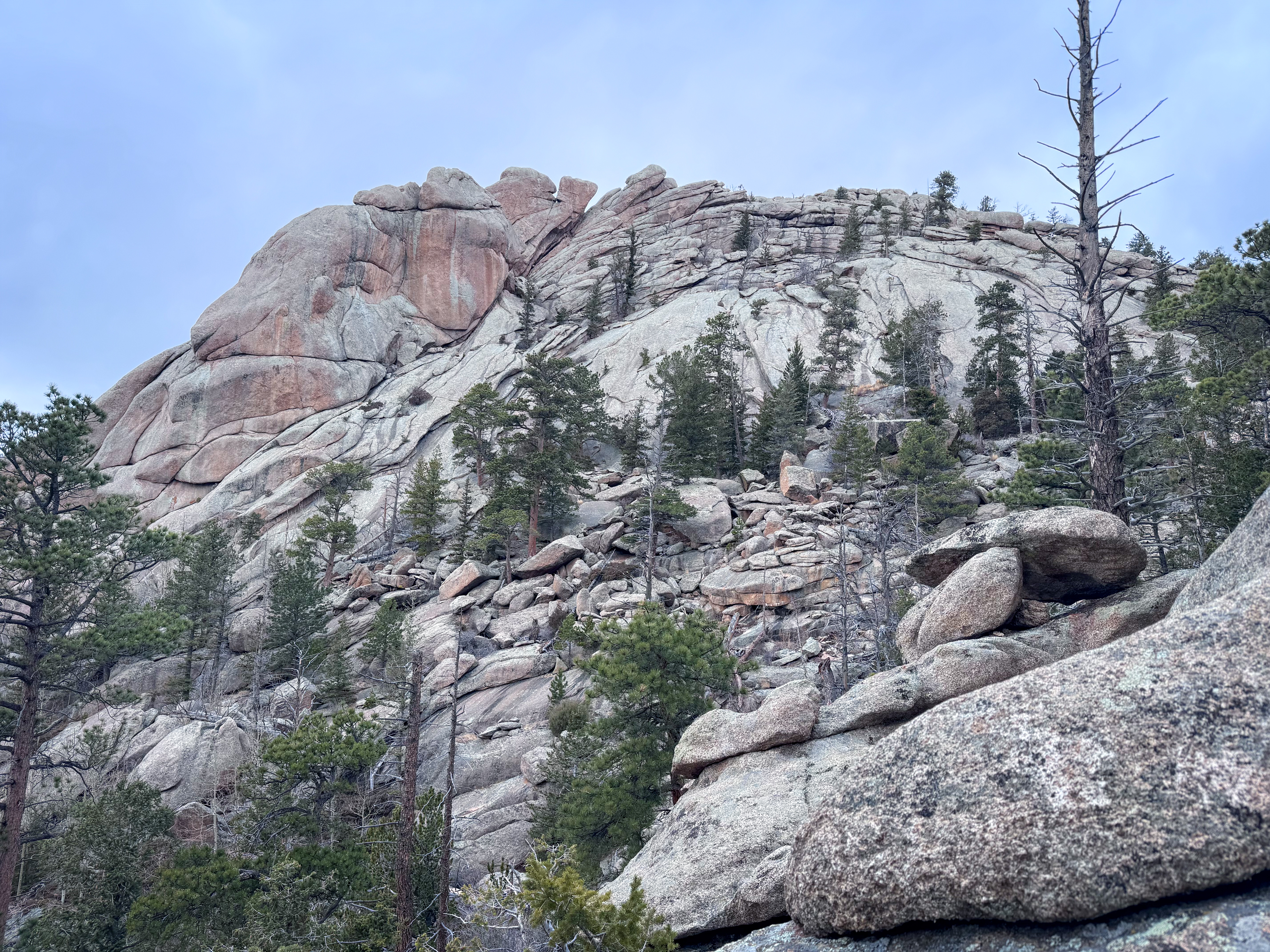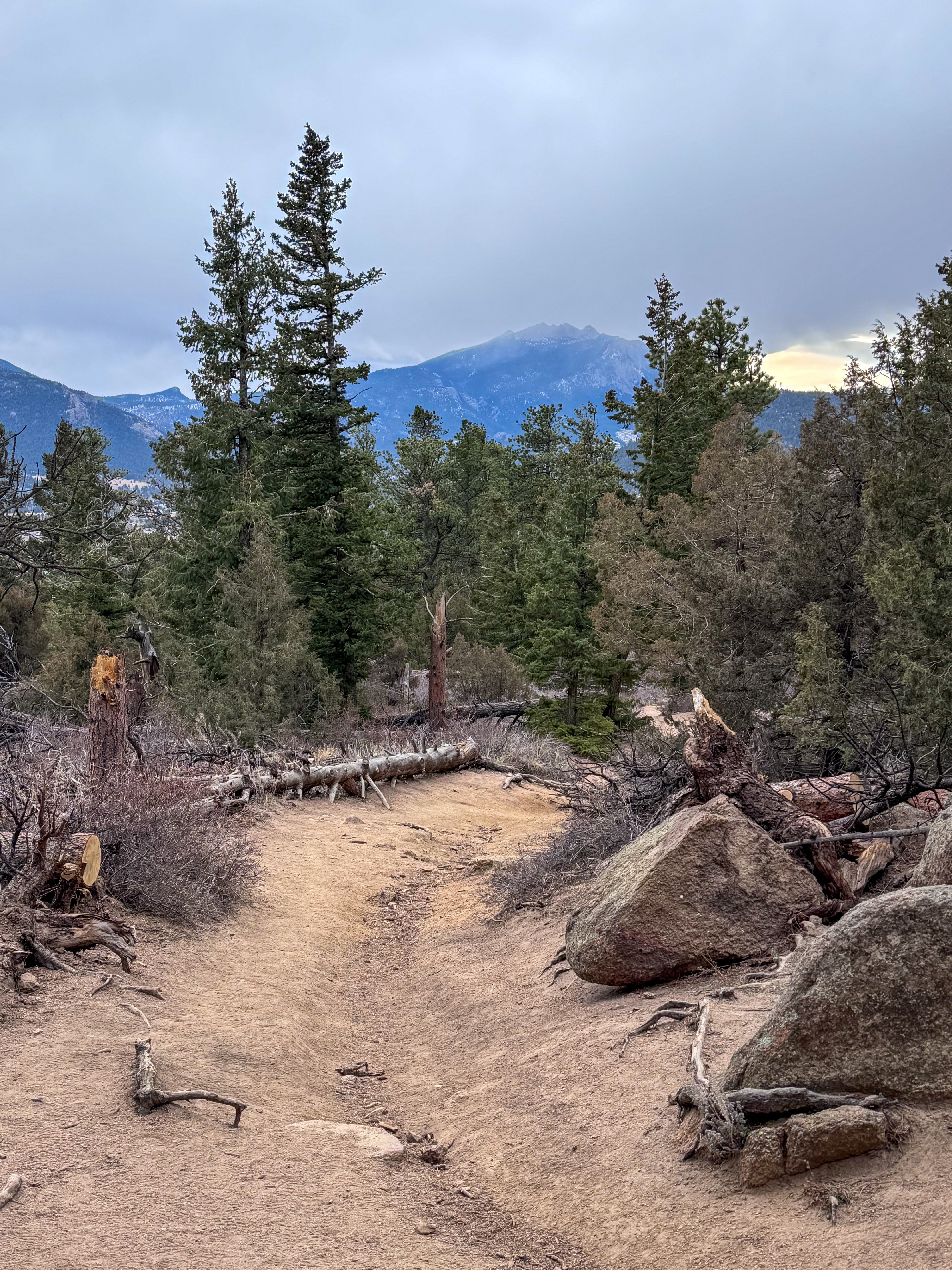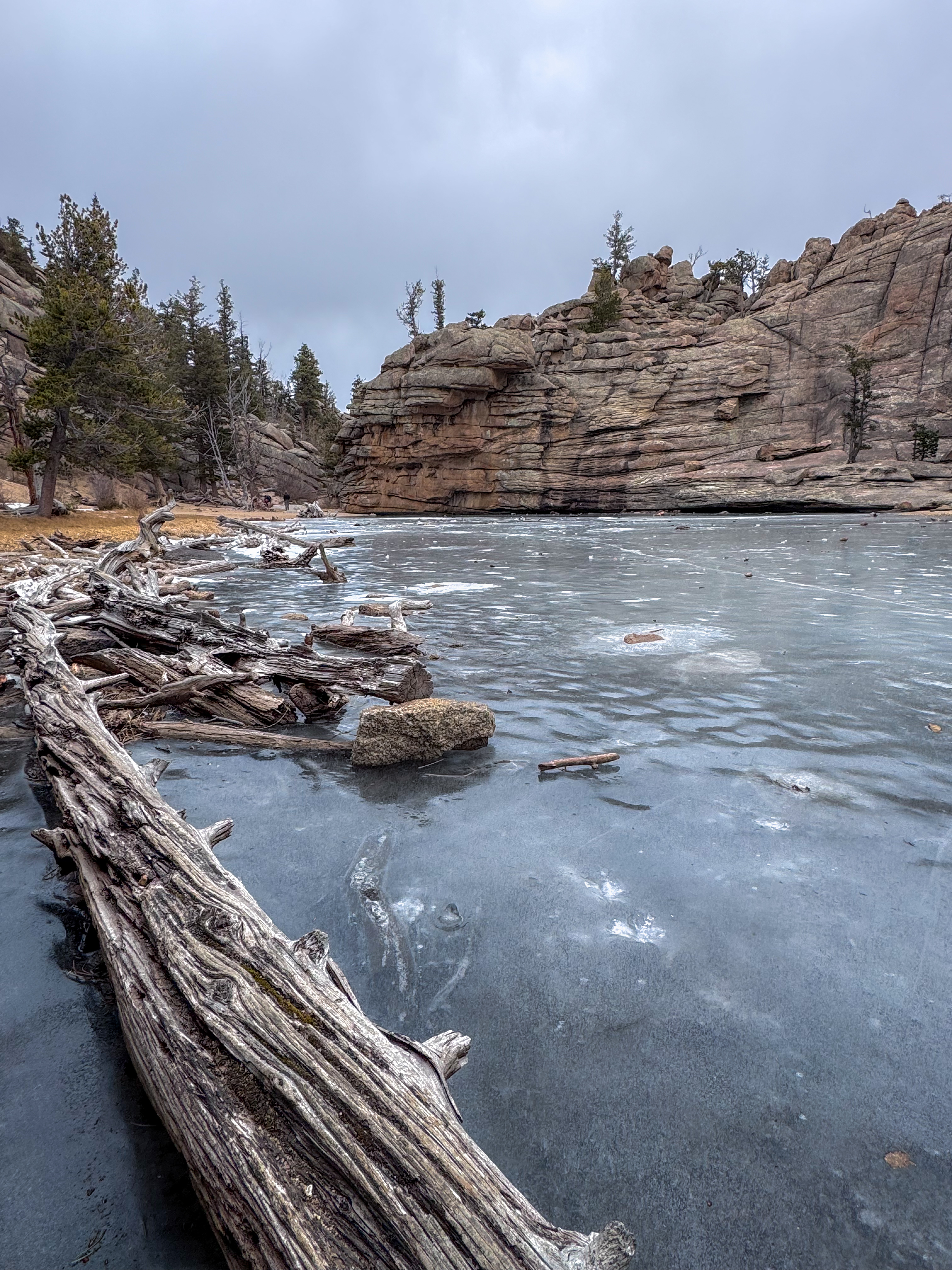 One thing stood out immediately: how dry this winter has been. The trail was mostly bare, with exposed rock and only small pockets of ice lingering in shaded areas. It felt unusual for Rocky Mountain National Park, but also revealing—like the landscape was showing its true bones.