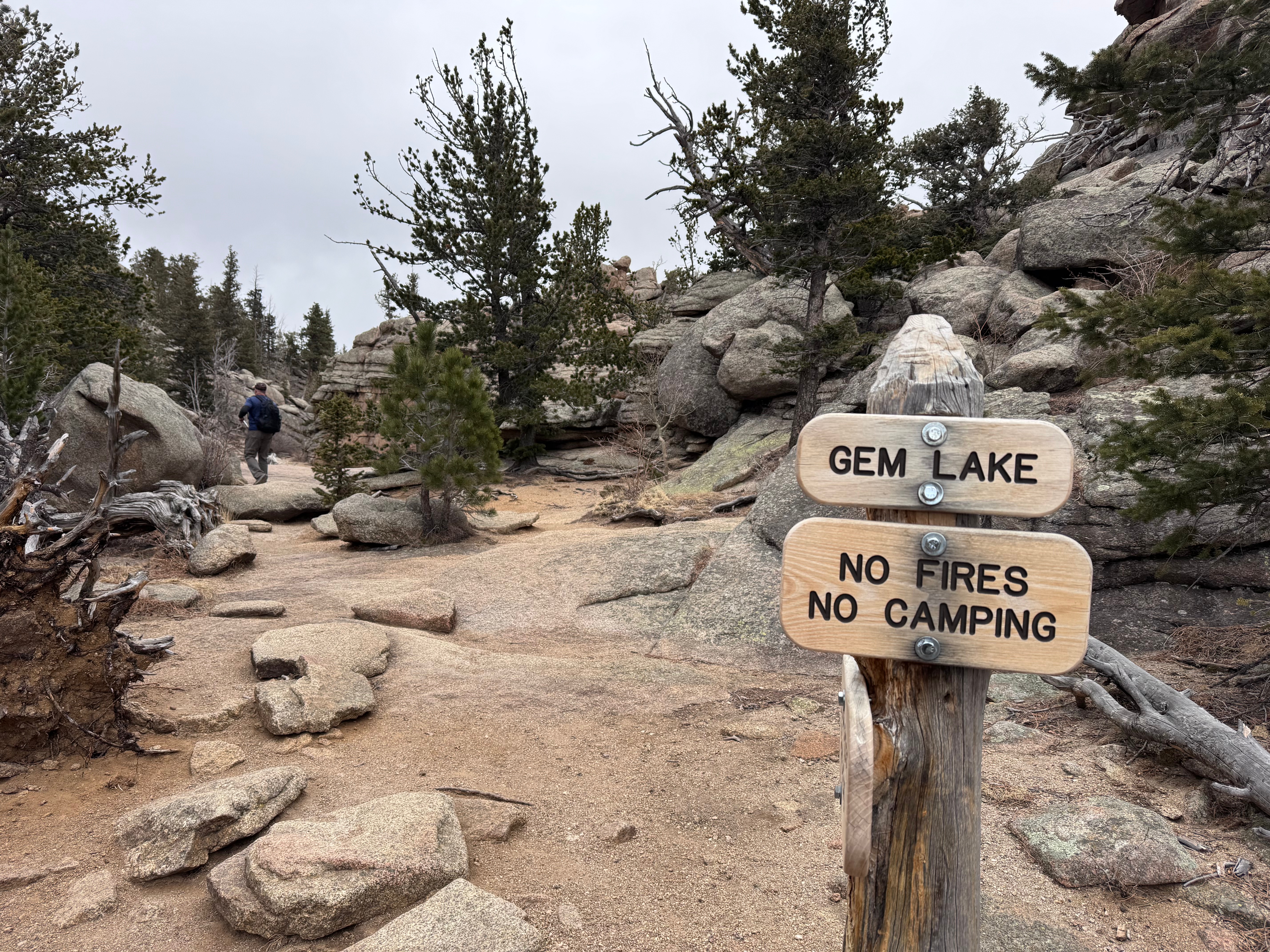 At the trailhead, we took the left fork, starting on the Lumpy Ridge Trail. The climb began immediately, winding through granite outcrops and ponderosa pines. From there, we connected to the Twin Owls Trail, a scenic stretch that added both distance and expansive views. Eventually, we picked up the Gem Lake Trail, which led us the rest of the way to the lake with continuous overlooks of Estes Park below.