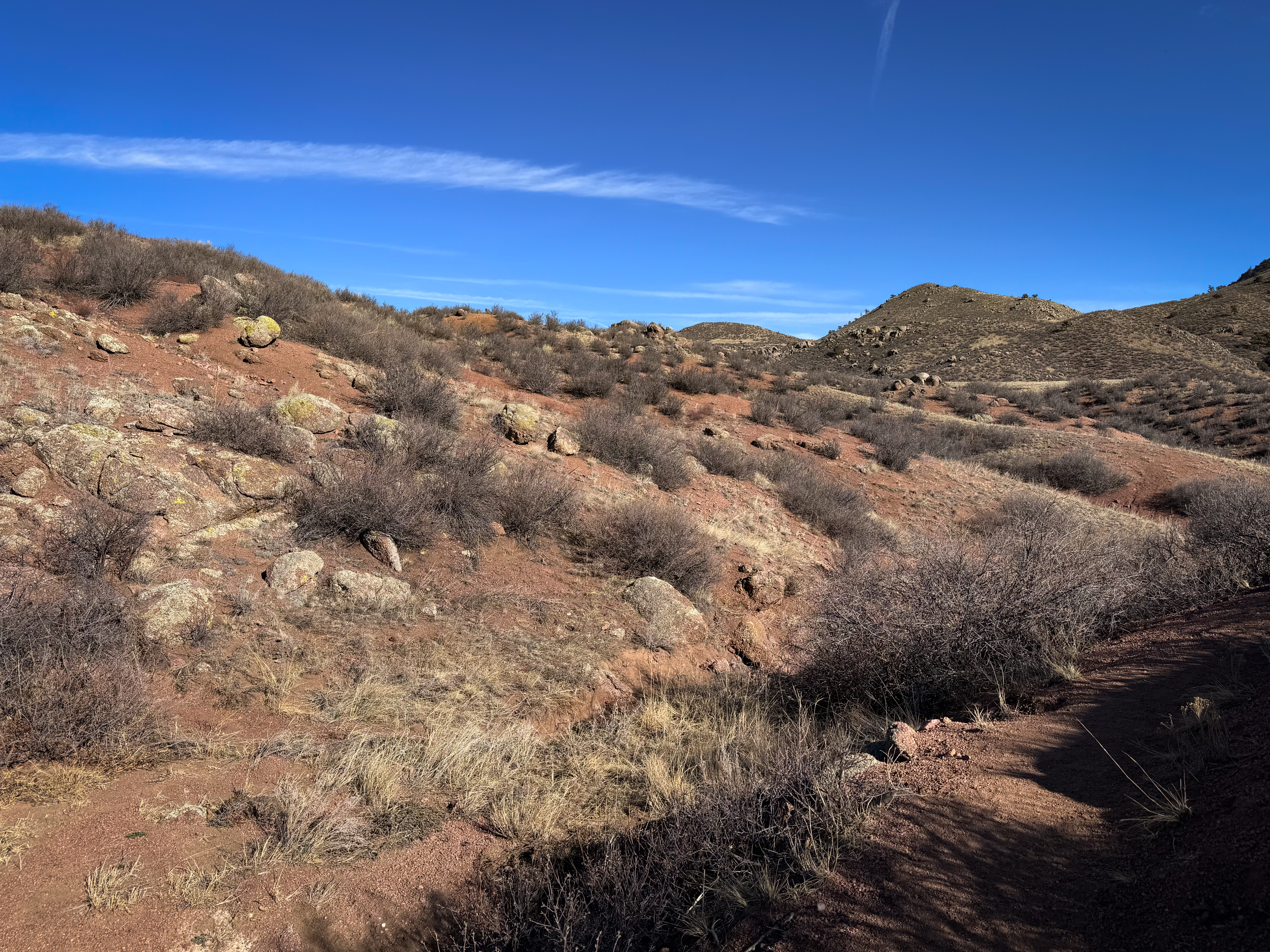 Winter has been quiet this year — not in the hush of snowfall, but in the absence of it. With little snow to shape the season, we turned instead to the foothills, where dry ground and cool air offered a different kind of invitation. Bill, Greg, and I spent the day wandering the 3 Bar and OT Trail loop at Eagle’s Nest Open Space, moving through open country shaped by wind, water, wildlife, and history.