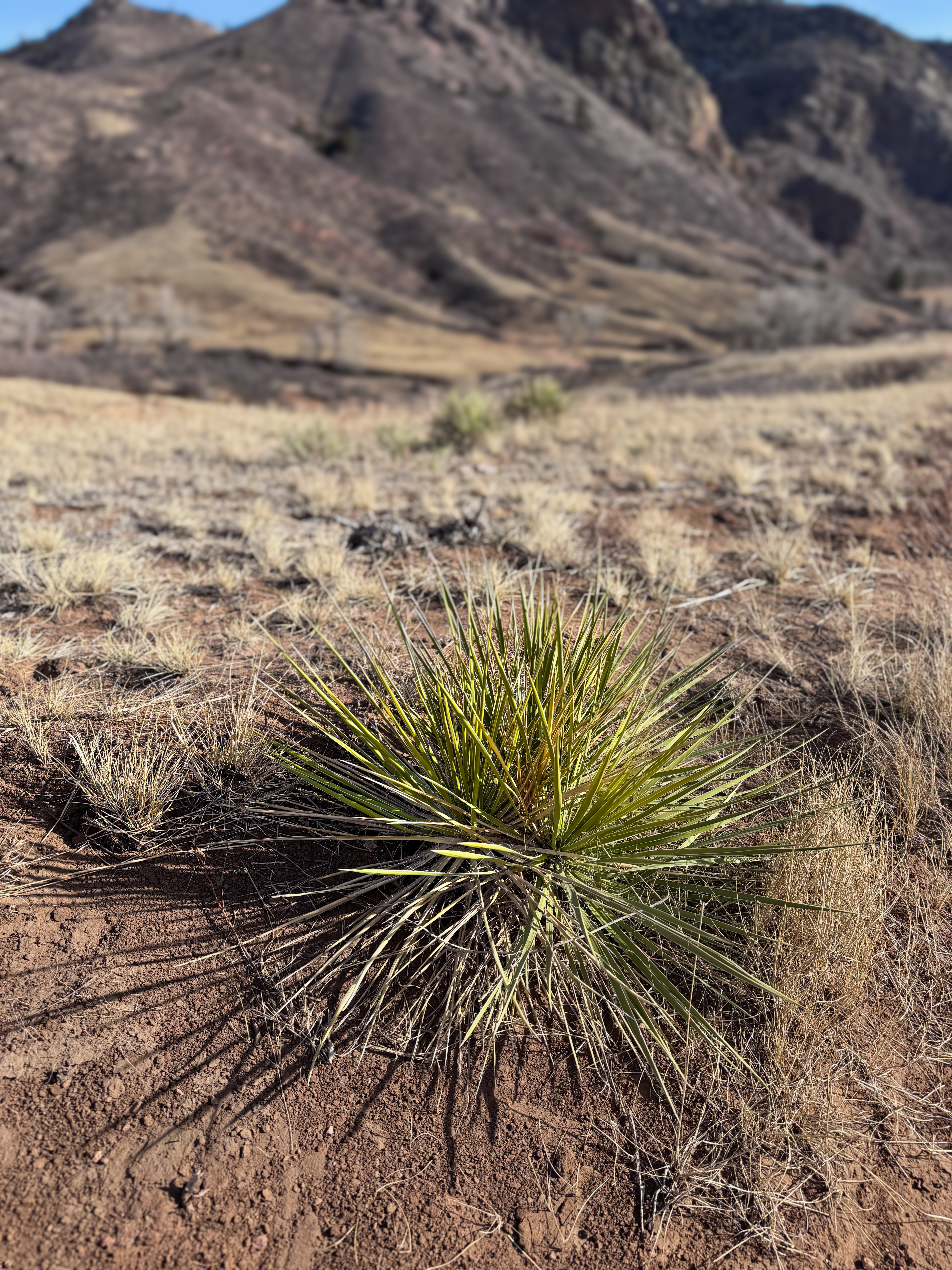 This is high desert country, and the vegetation reflects a resilience earned over time. Yucca punctuates the trail edges, low shrubs cling to rocky soil, and grasses bend easily to wind and sun.
